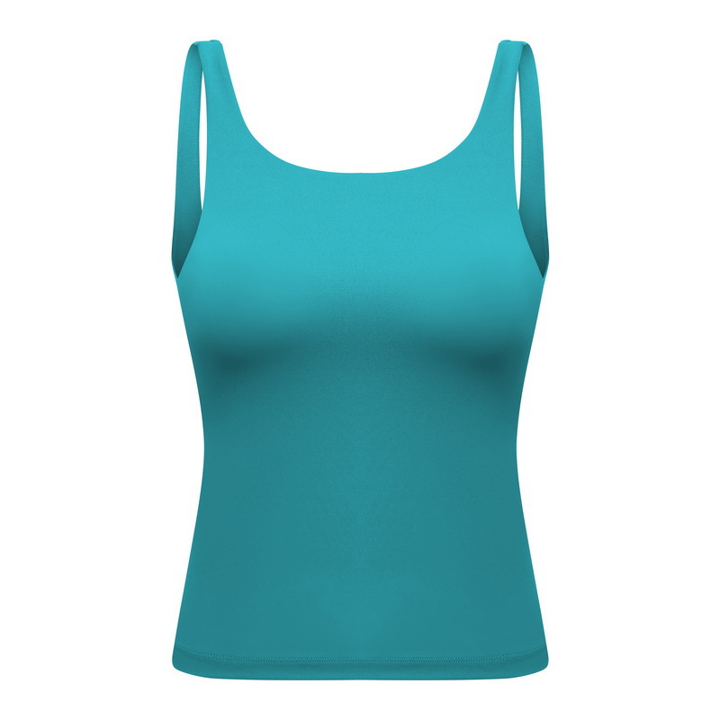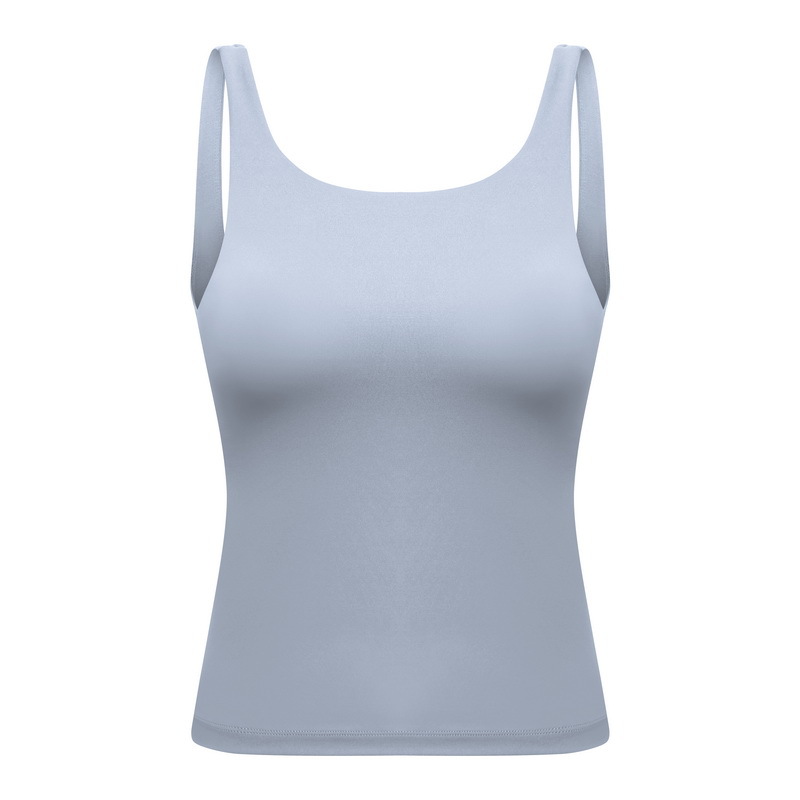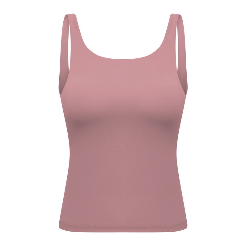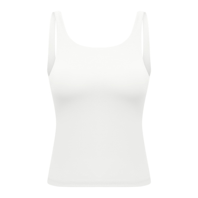 새로운 U-넥 민소매 피트니스 요가 탑 여성용 솔리드 컬러 등이없는 타이트 스포츠 바디 탑 (가슴 패드 포함)