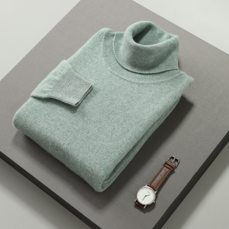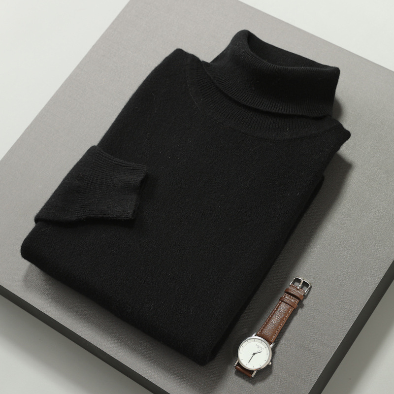 가을과 겨울 울 스웨터 남성용 터틀넥 풀오버 스웨터 옷깃 플랫 두꺼운베이스 셔츠 단색 캐주얼 니트 울 스웨터스토어 가기