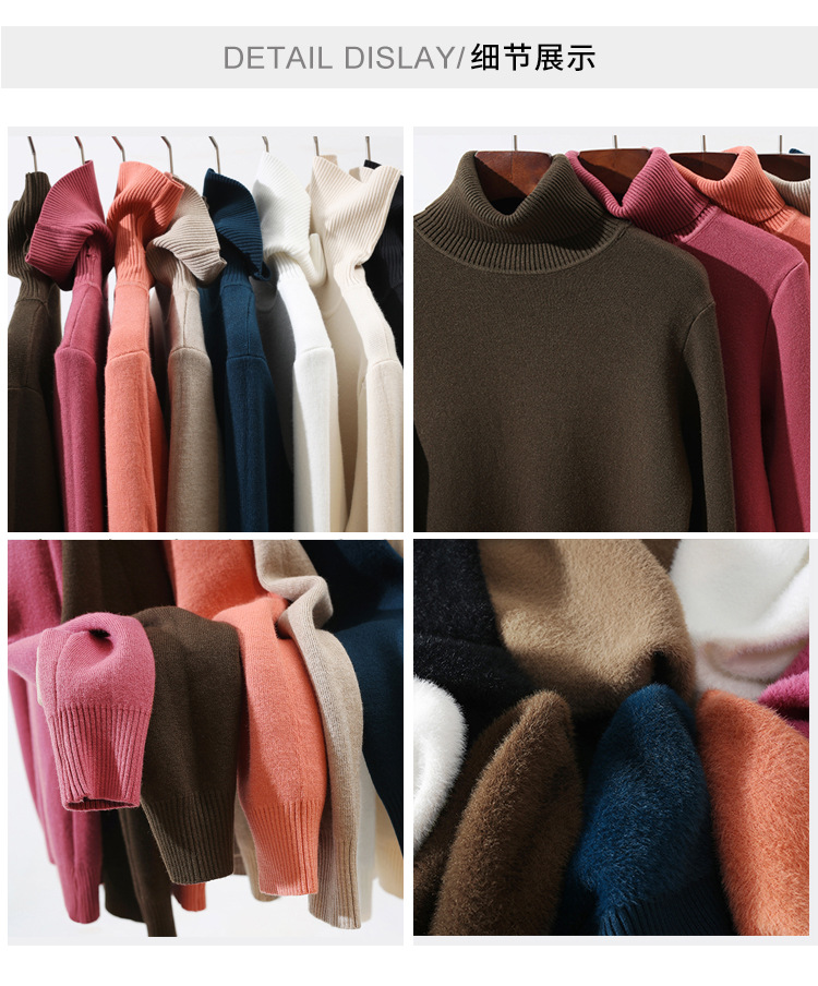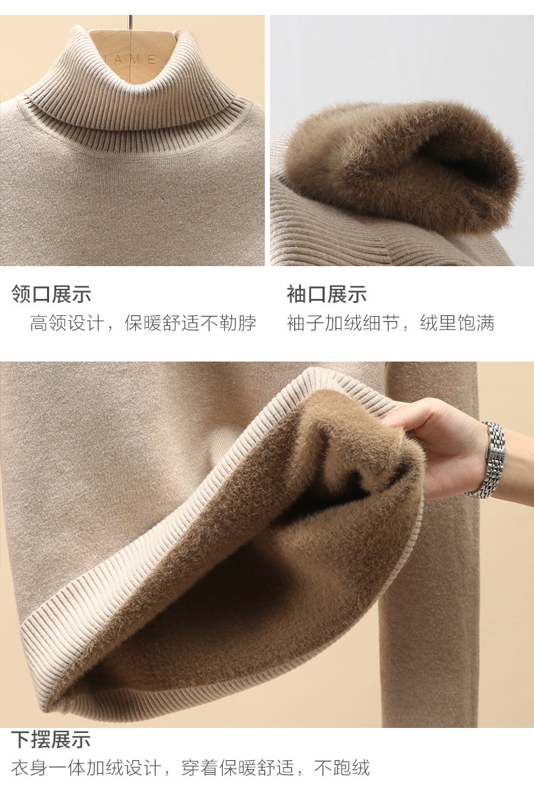 원피스 벨벳 패브릭 터틀넥 스웨터 여성의 가을과 겨울 기모 두껍게 2025 폭발 내부베이스 스웨터스토어 가기