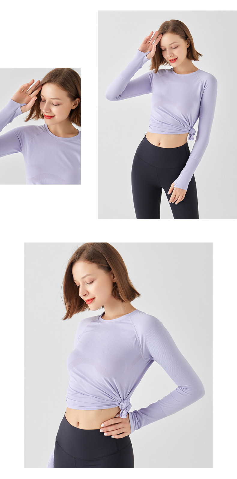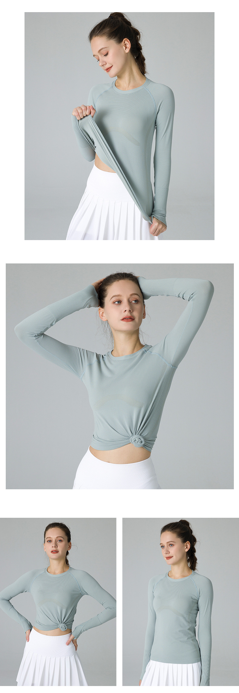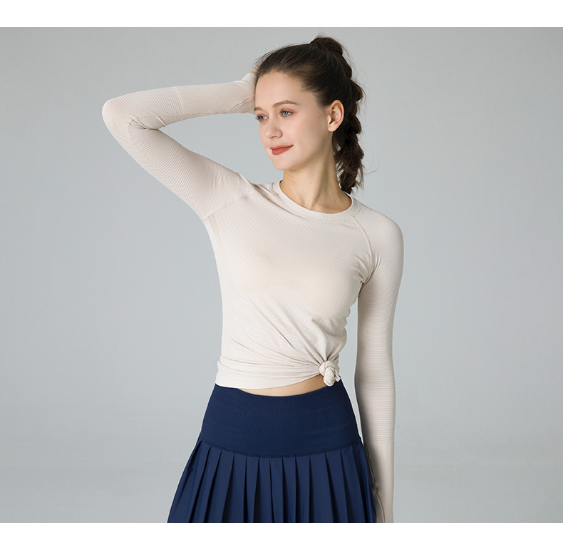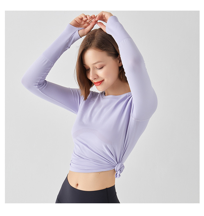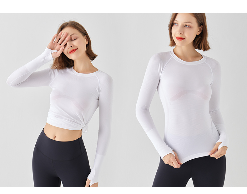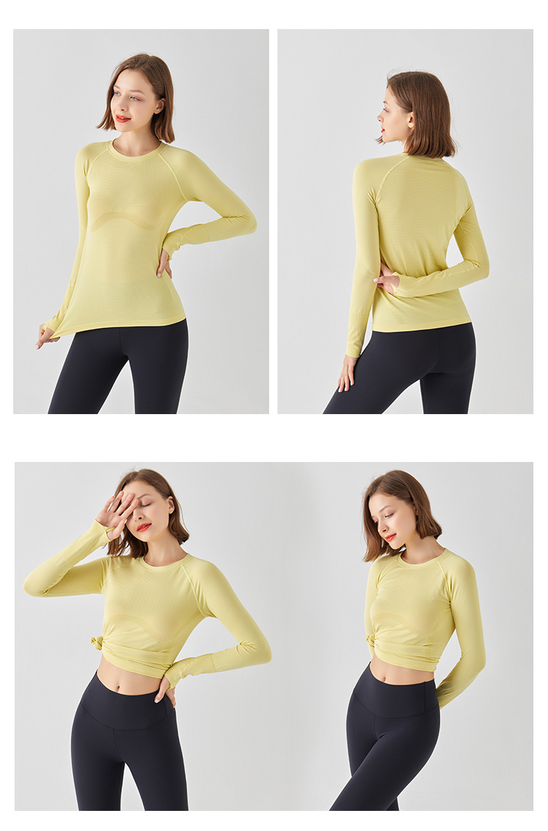 요가 상의 스포츠웨어 라운드넥 티셔츠 긴팔 슬림핏 흡습속건 야외 사이클링 러닝 통기성 속건