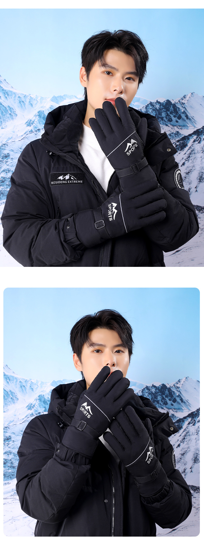 겨울용 보온 장갑 남성용 두꺼운 플리스 야외 라이딩 장갑 등산 낚시 풀 핑거 AB 버전 스키 장갑 YR