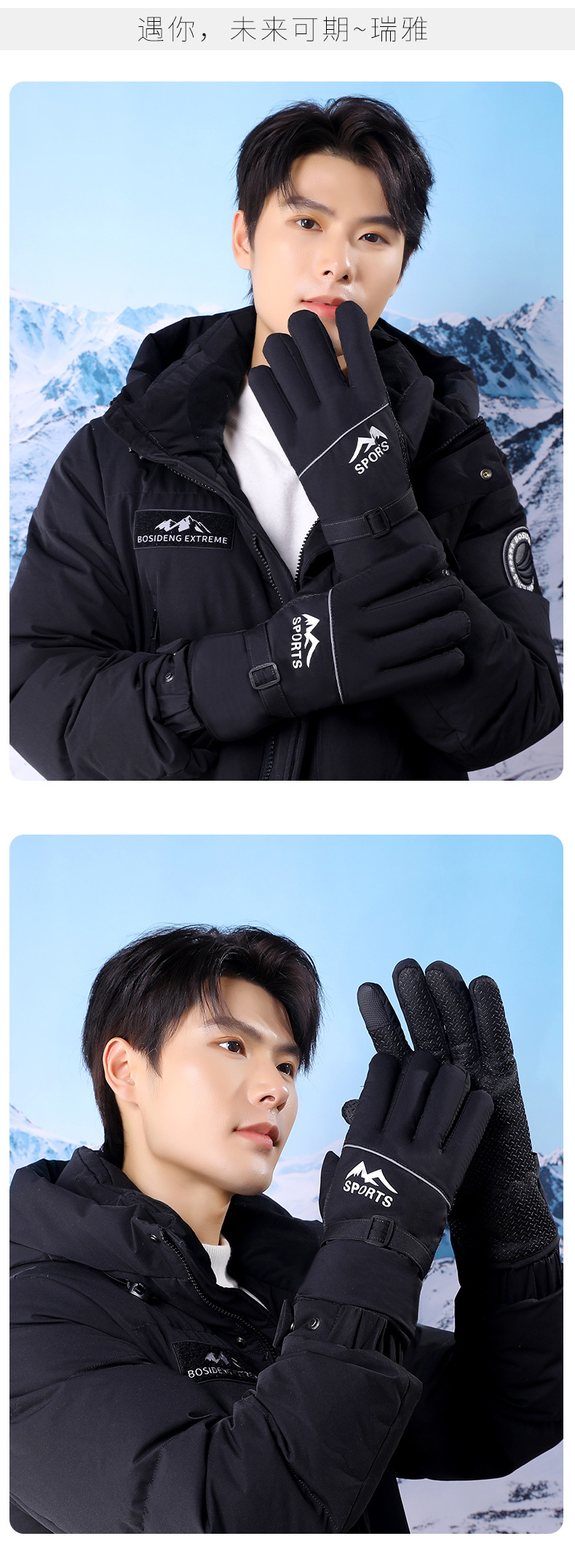 겨울용 보온 장갑 남성용 두꺼운 플리스 야외 라이딩 장갑 등산 낚시 풀 핑거 AB 버전 스키 장갑 YR스토어 가기