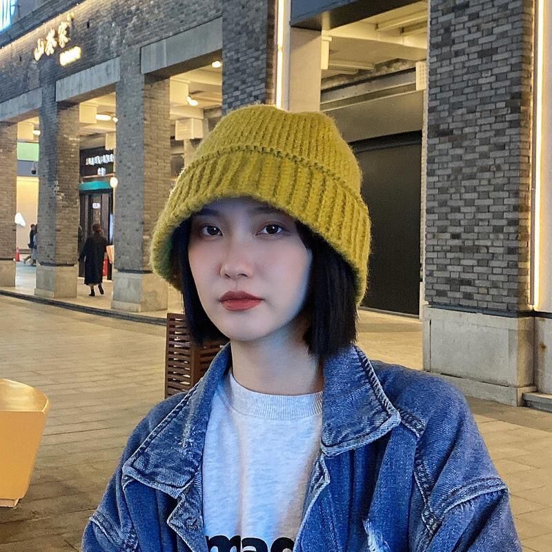 모자 여성 한국 동대문 같은 양모 어부 모자 가을과 겨울 한국 스타일 얼굴 모양 작은 따뜻한 니트 양동이 모자 패션스토어 가기