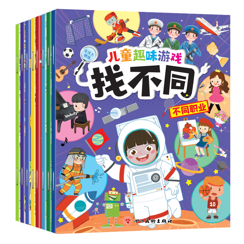 产品名称:儿童趣味游戏找不同(全套8本),尺寸:17*21cm,页数:每本16页,一套8本,每套重量:0.35kg,定价:96元(8本),装箱:60套/件货(20kg)
