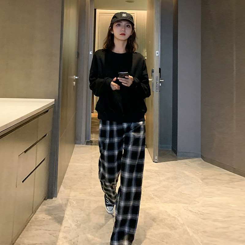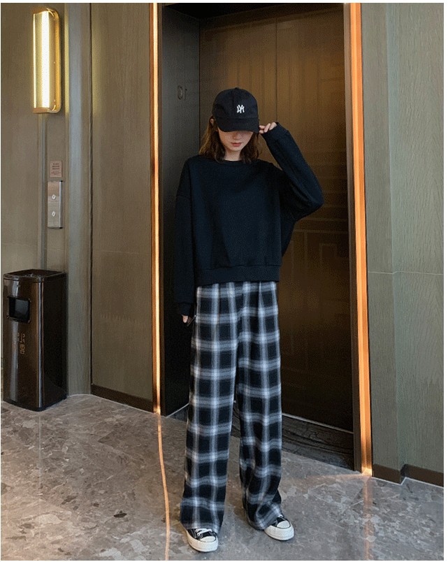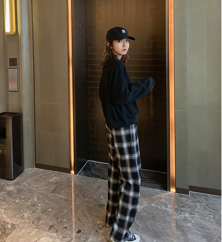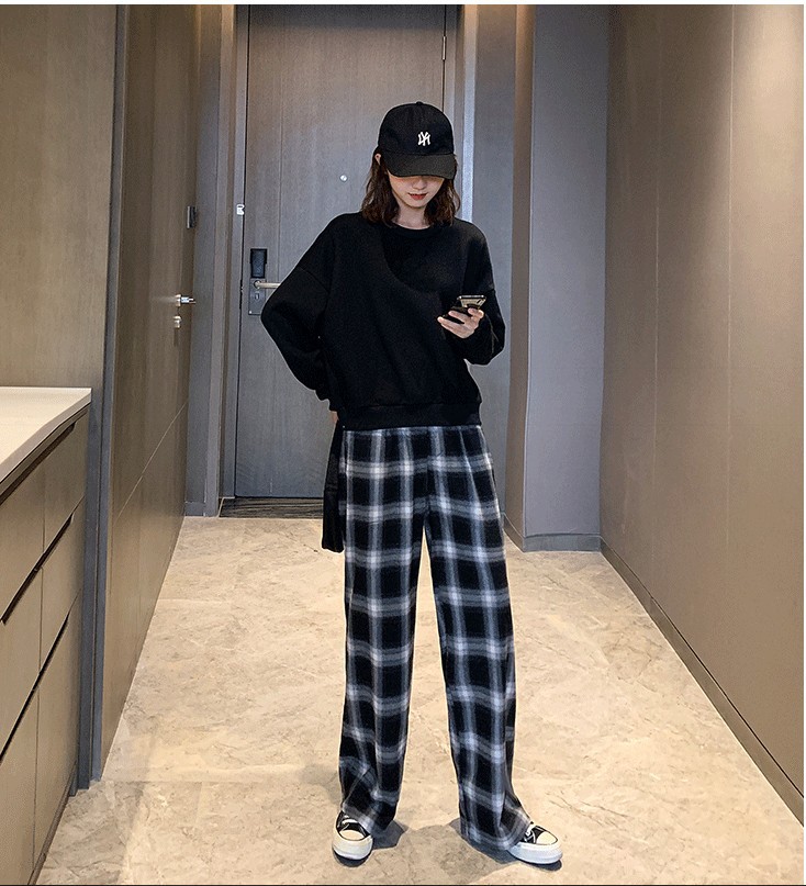 • SMX 두꺼운 파란색 격자 무늬 롱 팬츠 세트