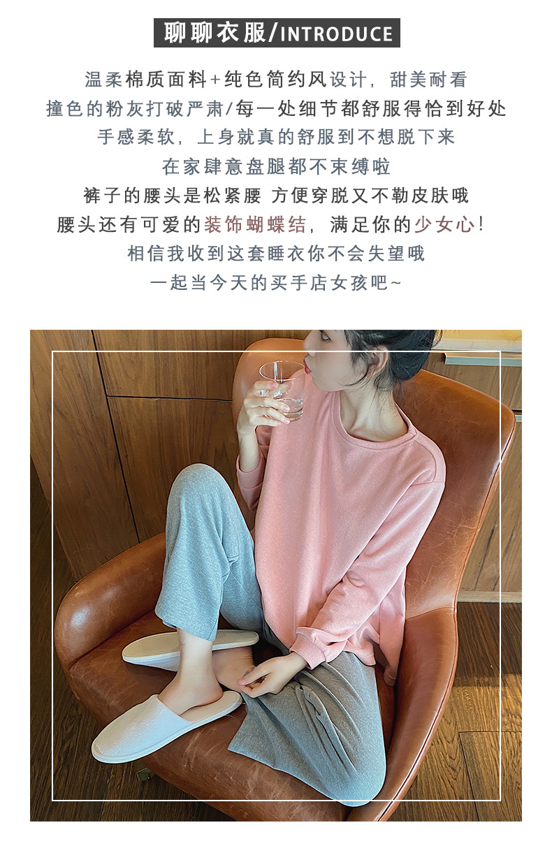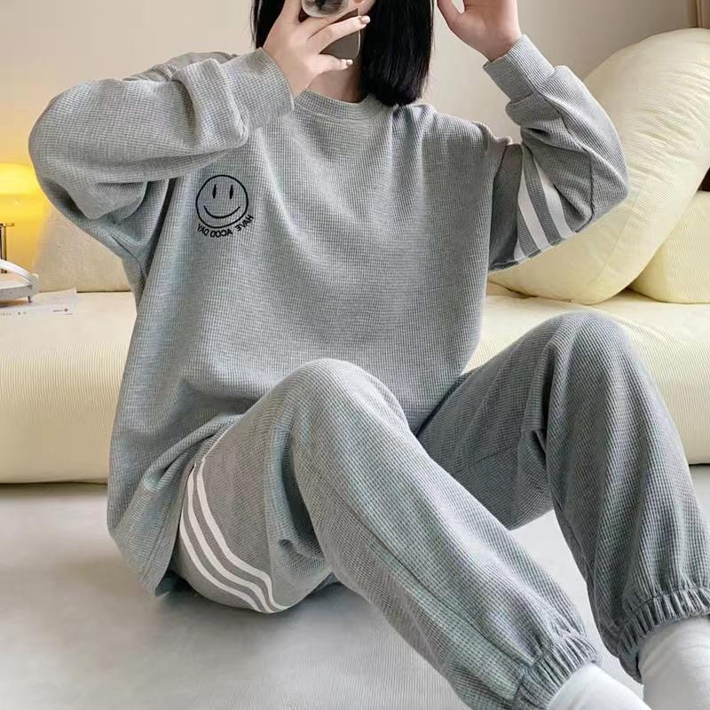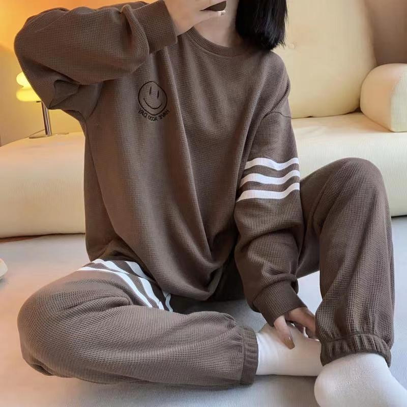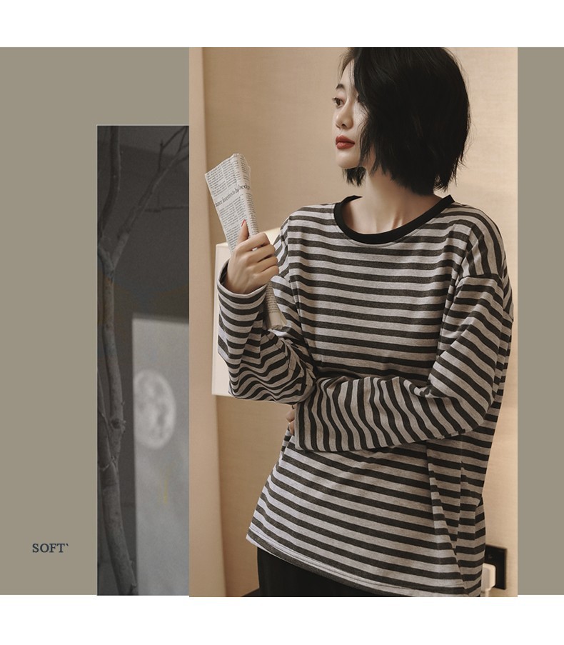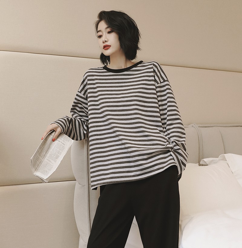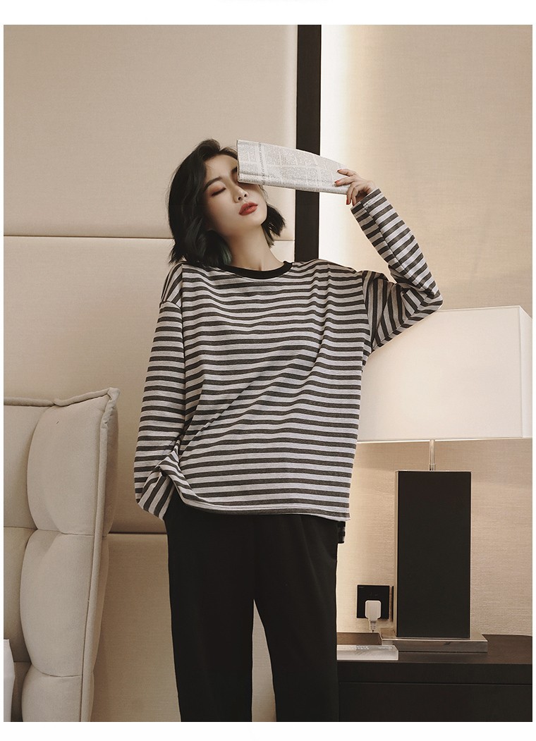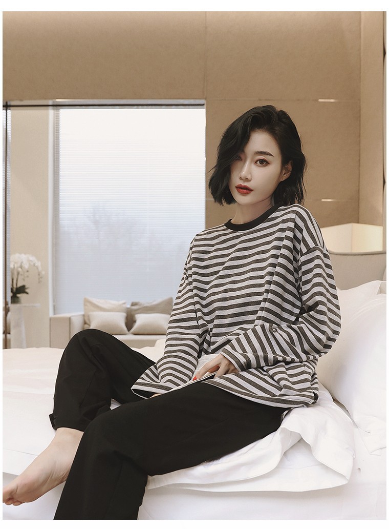 봄과 가을 잠옷 여성의 긴 소매 라운드 넥 줄무늬 얇은 캐주얼 소녀 달콤한 느슨한 세트 도매의 새로운 한국어 버전스토어 가기
