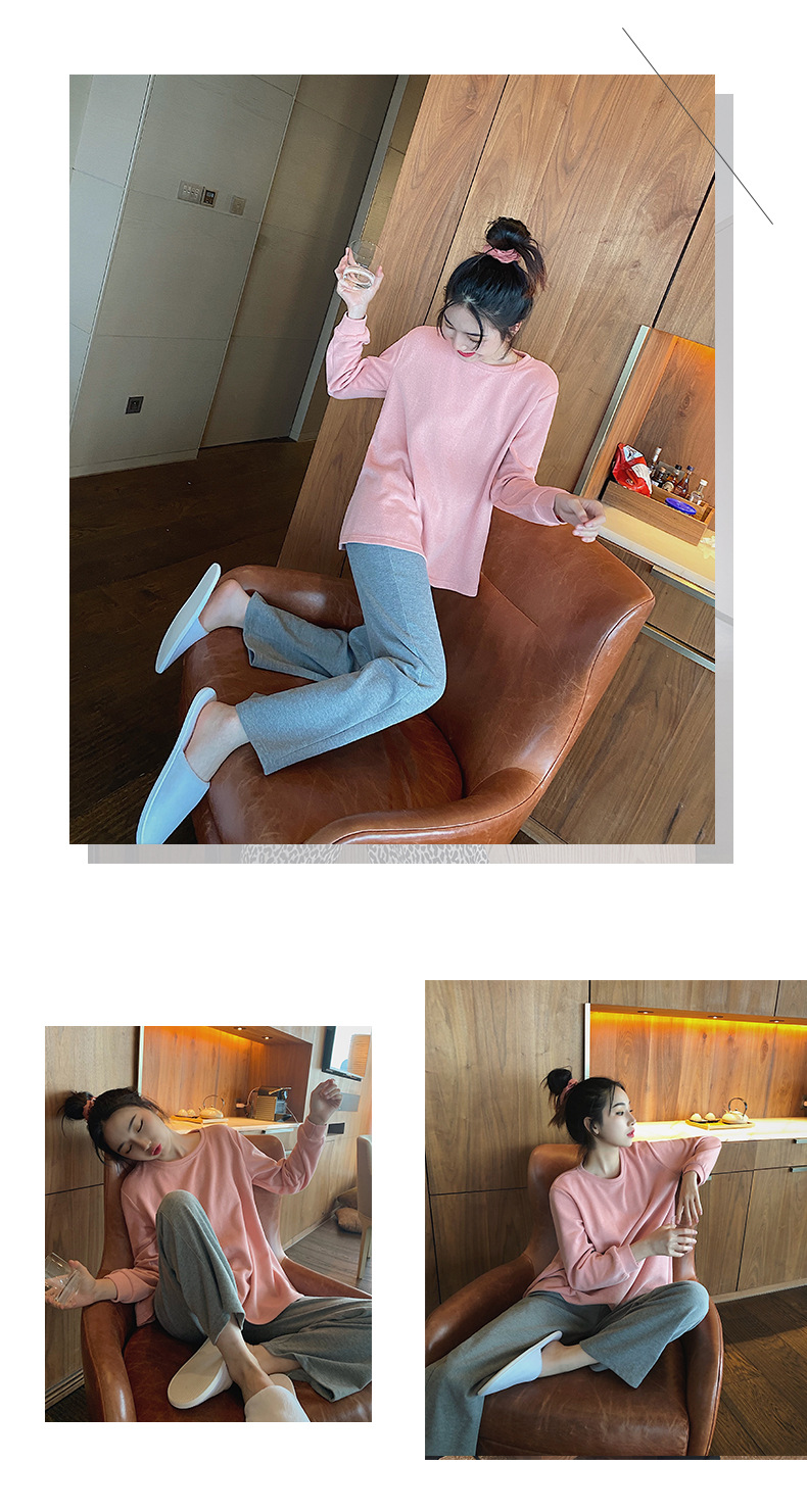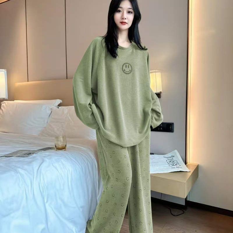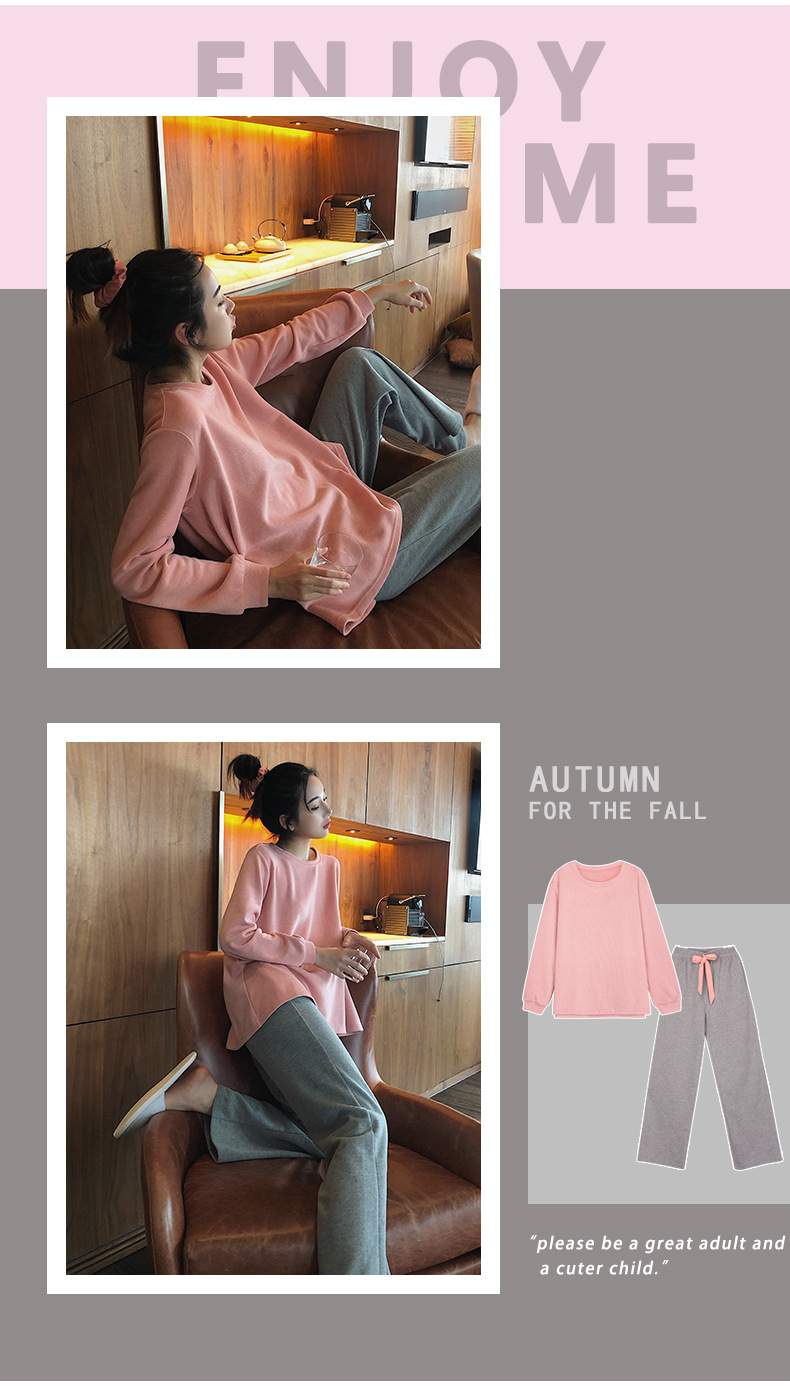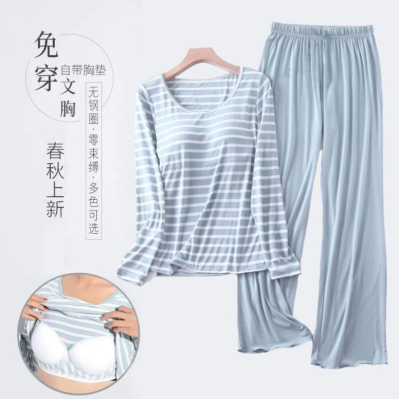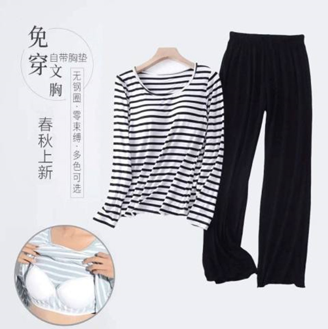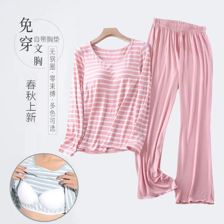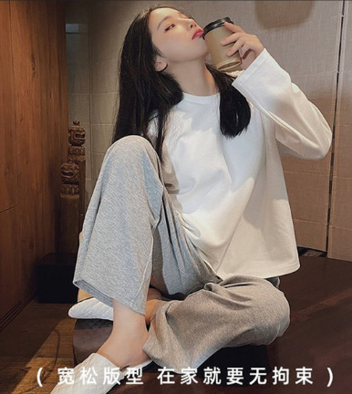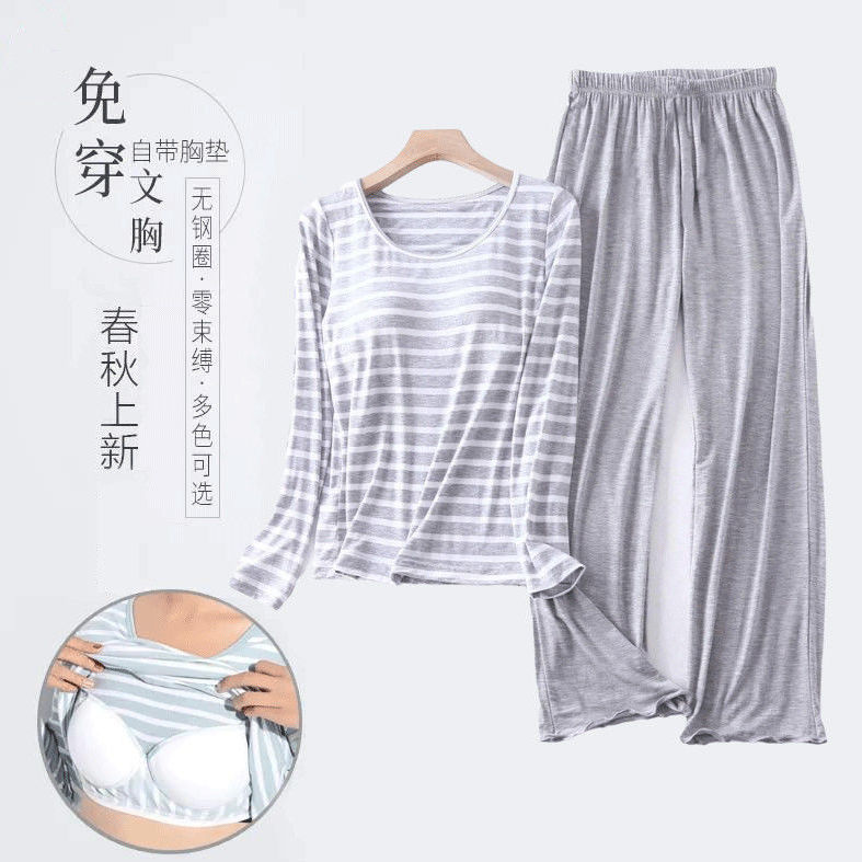 봄과 가을 잠옷 여성의 긴 소매 라운드 넥 줄무늬 얇은 캐주얼 소녀 달콤한 느슨한 세트 도매의 새로운 한국어 버전스토어 가기