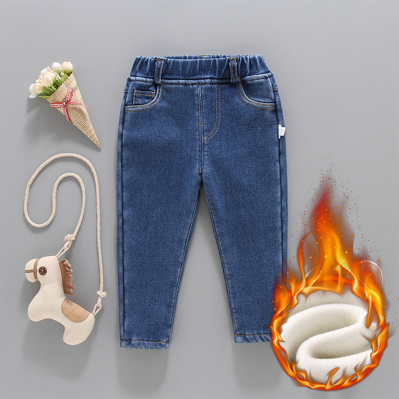 어린이 청바지 소년 플러스 벨벳 바지 어린이 가을과 겨울 소녀 1 벨벳 단색 청바지 공장 직판스토어 가기