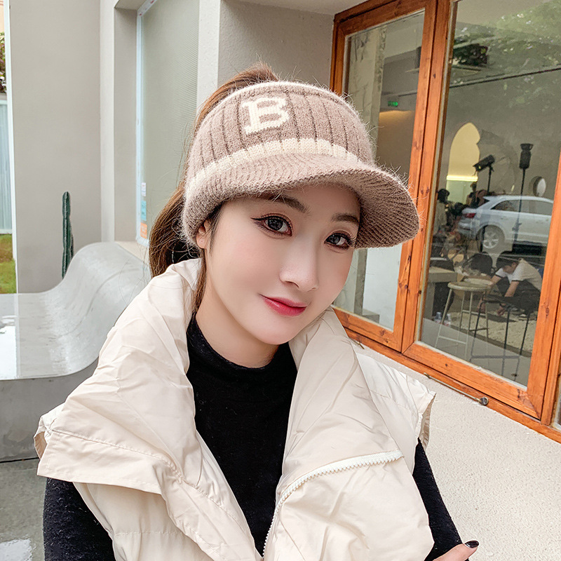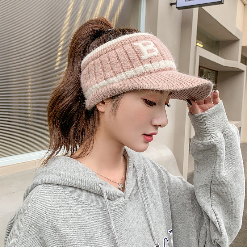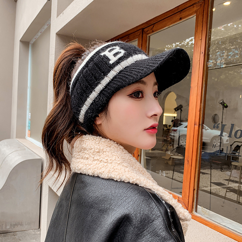 새로운 여성의 빈 탑 울 모자 한국 유행 가을과 겨울 패션 모든 일치 이슬 말꼬리 니트 따뜻한 스포츠 모자스토어 가기