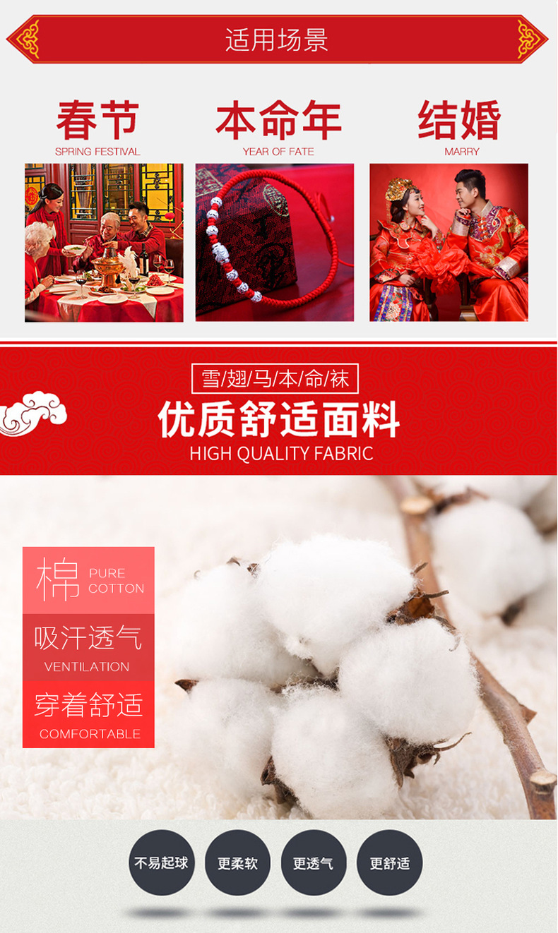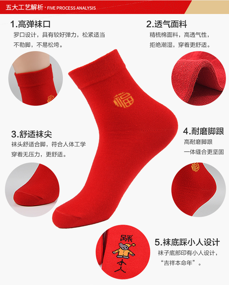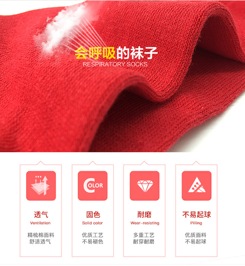 출생 년 양말 빨간면 양말 편안한 커플 웨딩 Fu Zi 가을과 겨울 중반 송아지 양말 빨간 양말 도매