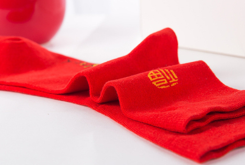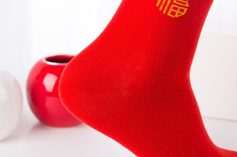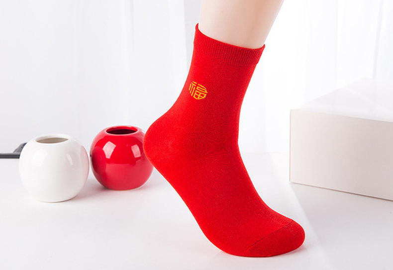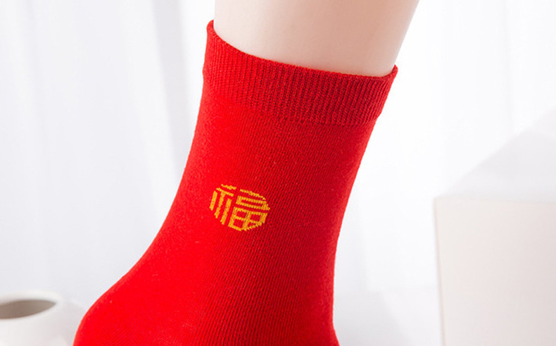 출생 년 양말 빨간면 양말 편안한 커플 웨딩 Fu Zi 가을과 겨울 중반 송아지 양말 빨간 양말 도매스토어 가기