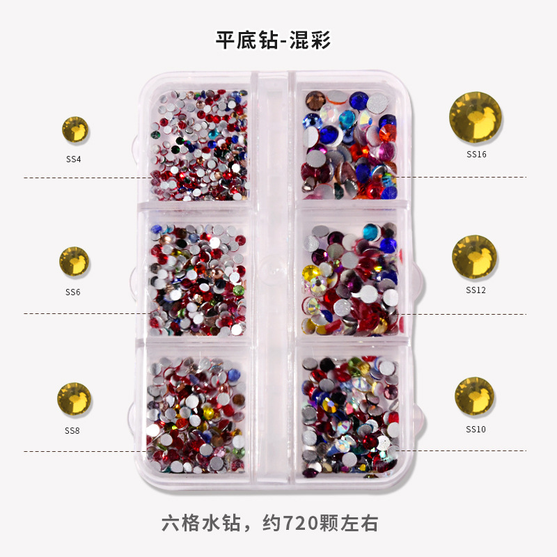 6 그리드 네일 아트 모조 다이아몬드 보석 세트 박스 12 그리드 컬러 다이아몬드 사이즈 서브 팩 플랫 바닥