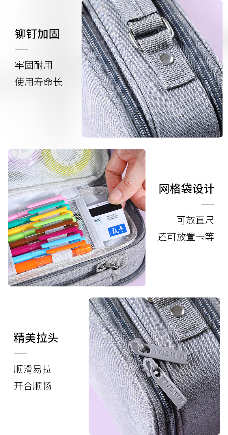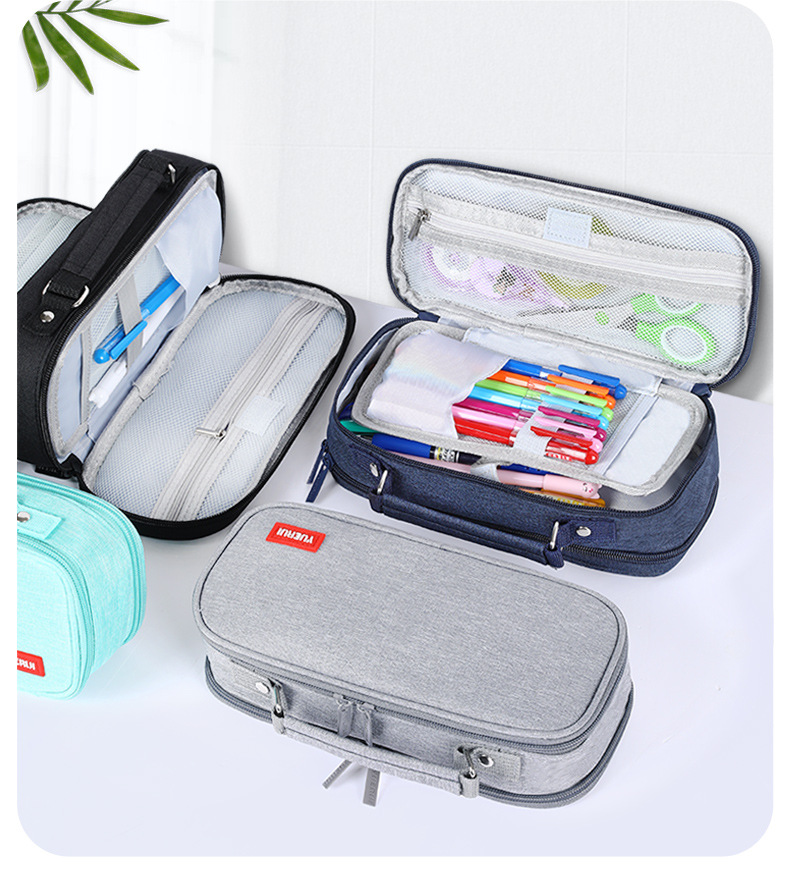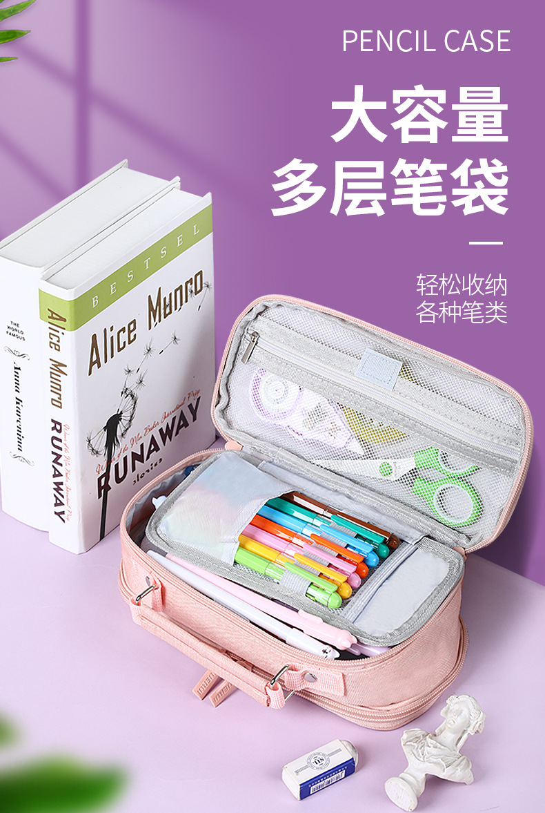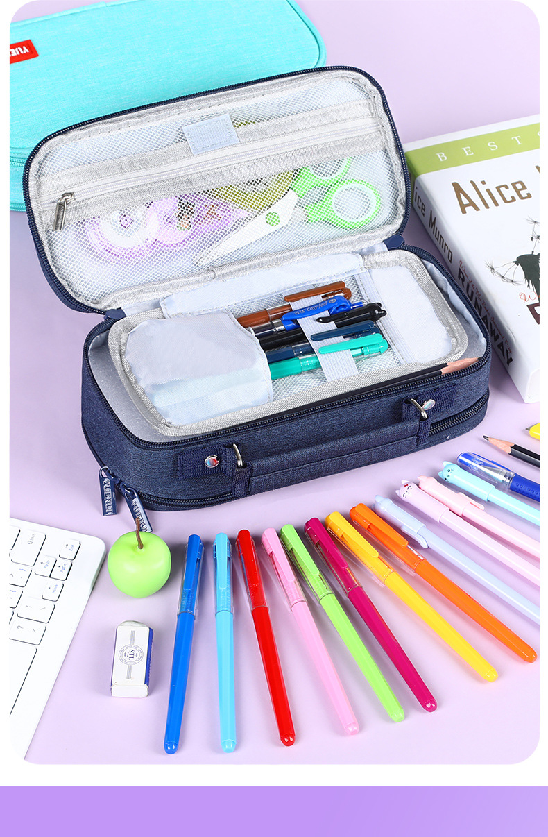 국경을 넘는 대용량 캔버스 중학교 고등학생을위한 다층 연필 가방 초등 학생을위한 간단한 다기능 연필 가방 휴대용 문구 상자
