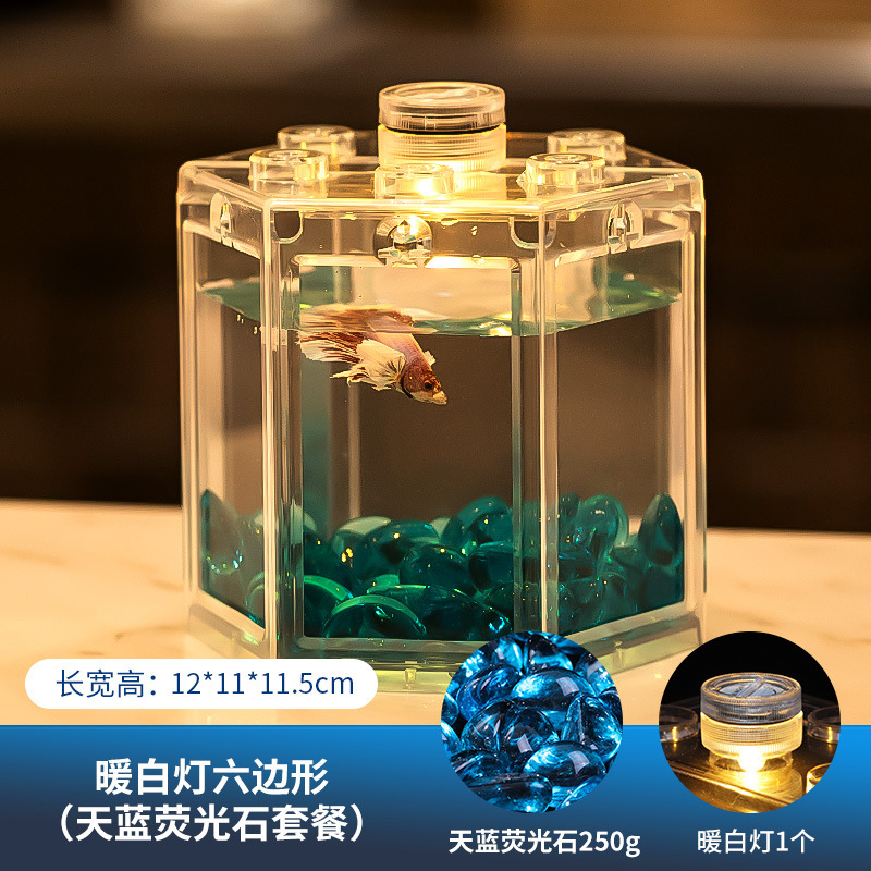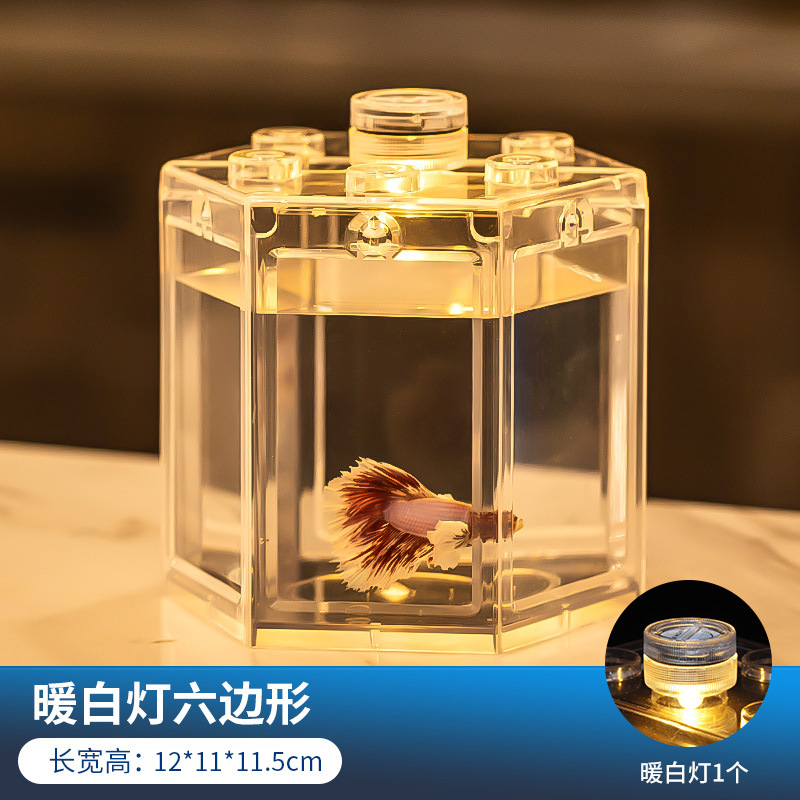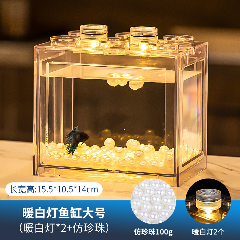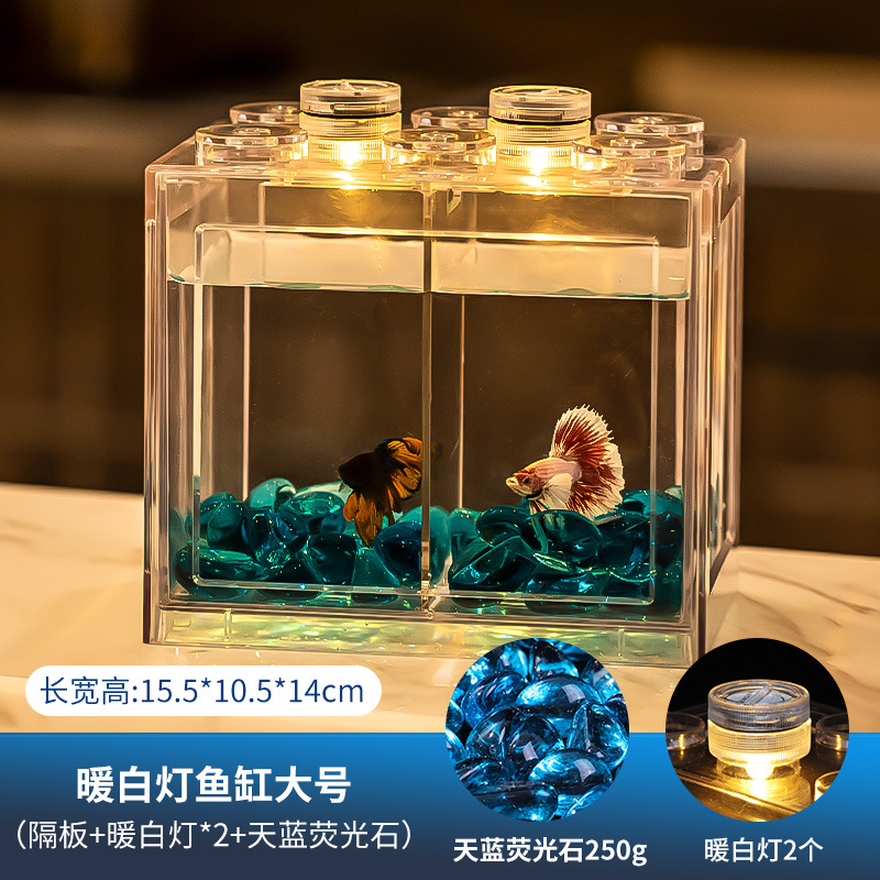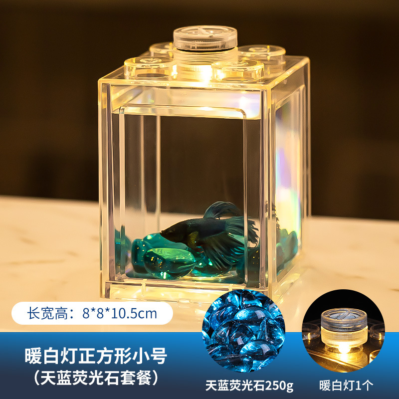 미니 물고기 탱크 금붕어 싸움 물고기 데스크탑 테이블 빌딩 블록 작은 아크릴 플라스틱 물고기 마이크로 풍경 생태 탱크