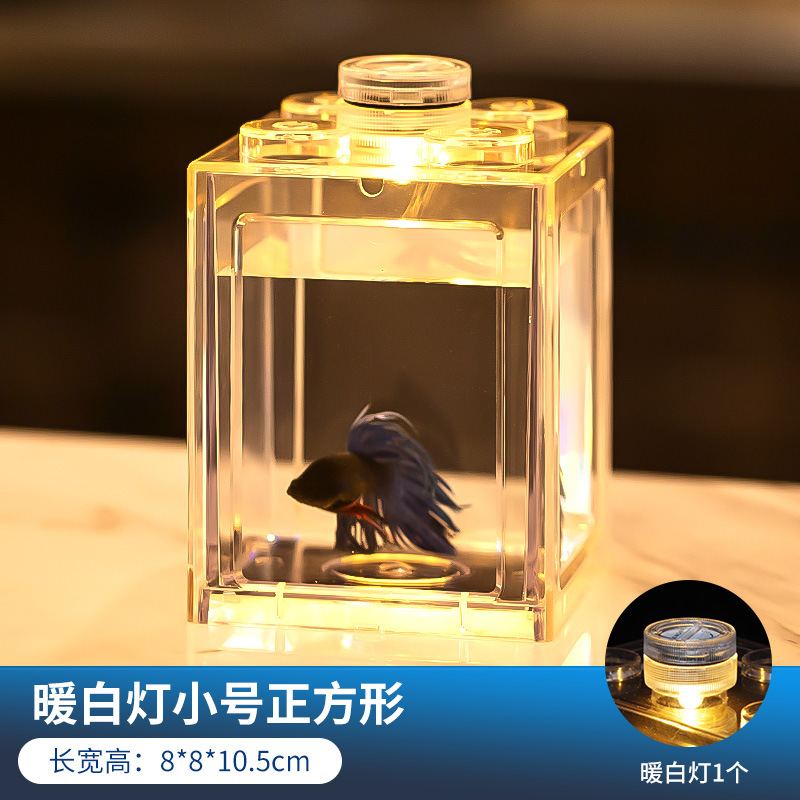 미니 물고기 탱크 금붕어 싸움 물고기 데스크탑 테이블 빌딩 블록 작은 아크릴 플라스틱 물고기 마이크로 풍경 생태 탱크스토어 가기