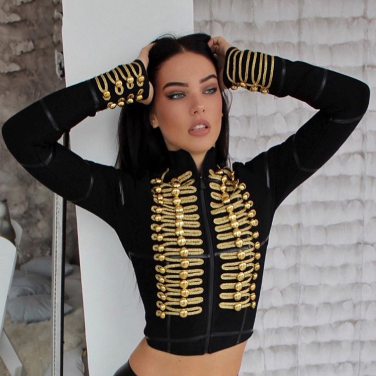 2025 여성 가을 겨울 재킷 금사 자수 상의 고급 단추 수출용 도매 및 소매스토어 가기