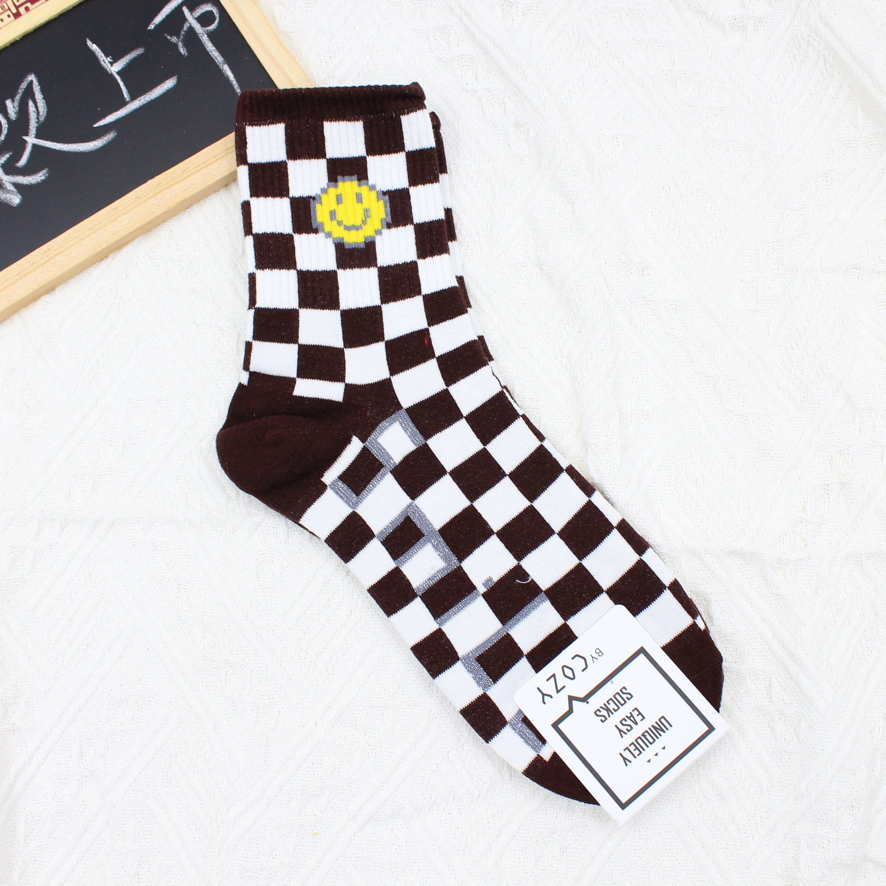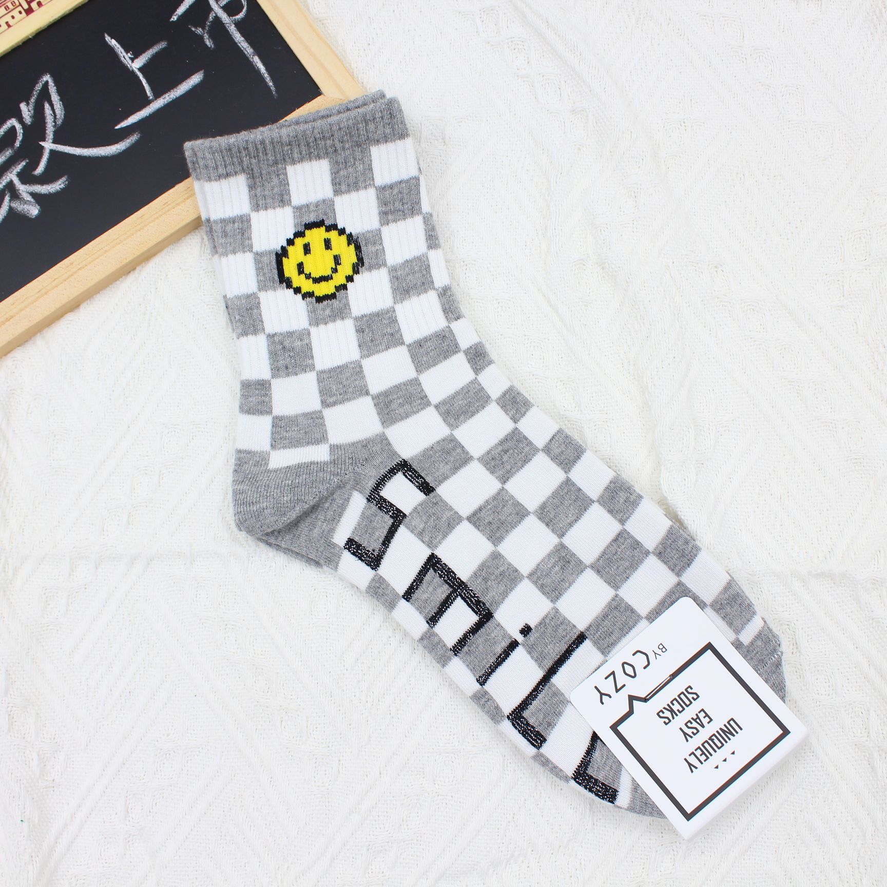 한국 동대문 가을과 겨울 새로운 체스 판 스마일 여성 양말 밝은 선 편지 한국 여성 스타일스토어 가기