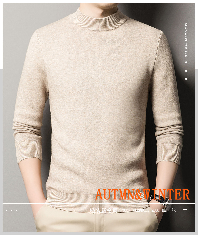 남자의 가을과 겨울 새로운 하프 하이 칼라 니트웨어 남자의 기모 두꺼운 스웨터 남자의 캐주얼 베이스 셔츠 남성 의류 공장스토어 가기