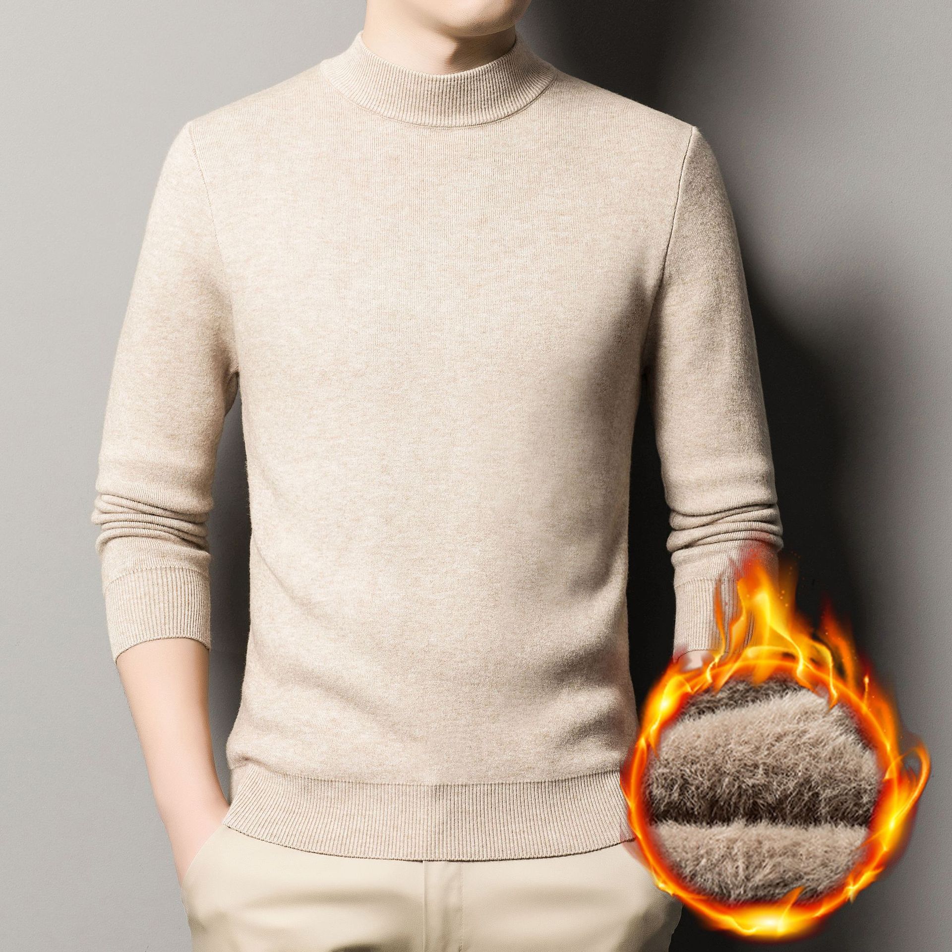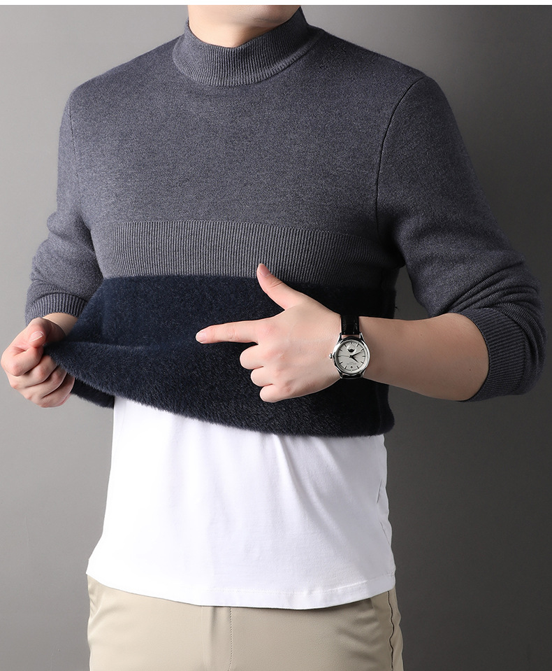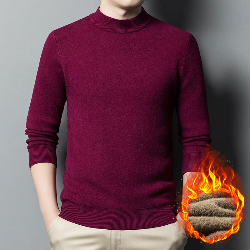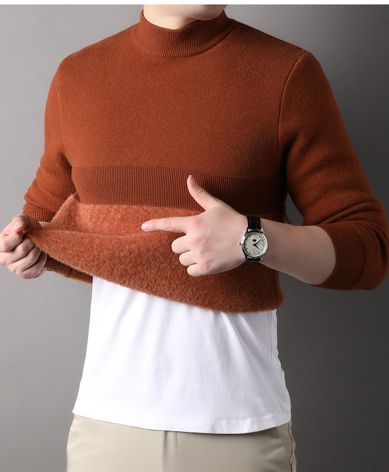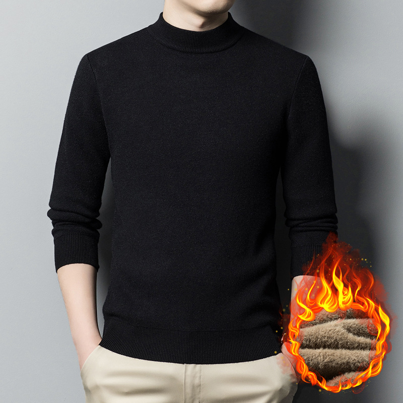 남자의 가을과 겨울 새로운 하프 하이 칼라 니트웨어 남자의 기모 두꺼운 스웨터 남자의 캐주얼 베이스 셔츠 남성 의류 공장