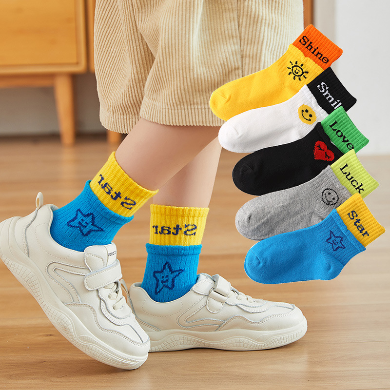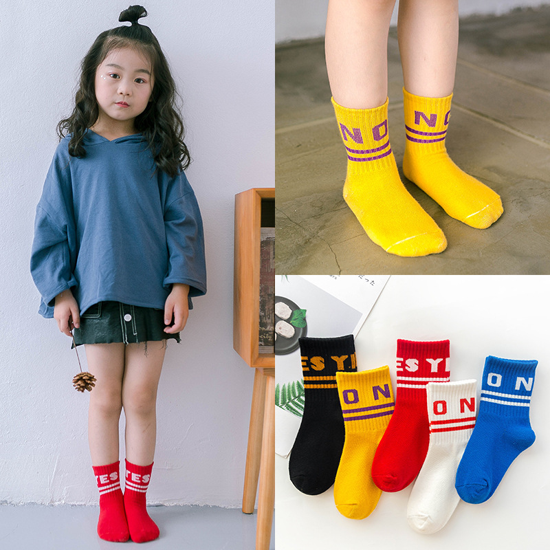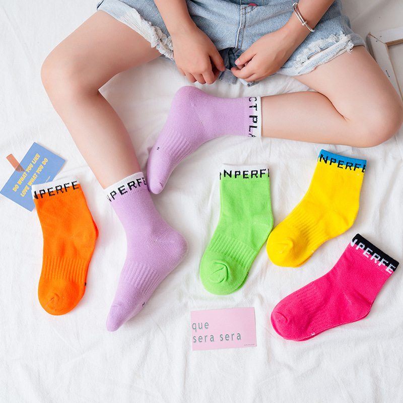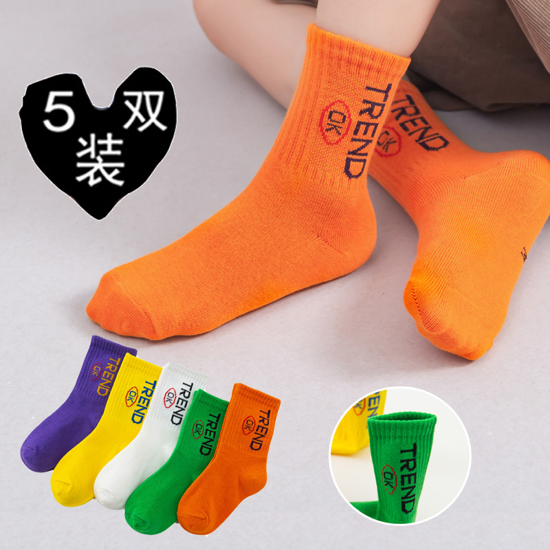 2024 가을 아동 양말 유아 양말 중목 양말 고탄력 영어 트렌드 양말 밝은 색상 캐주얼 아동 양말