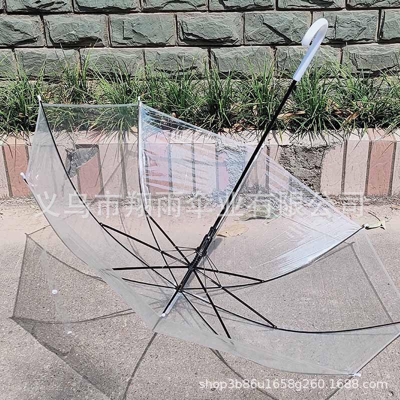 재고 도매 8 뼈 투명 우산 화이트 색상 환경 보호 우산 자동 우산 일회용 창조적 인 인터넷 빨간 우산 마구간스토어 가기