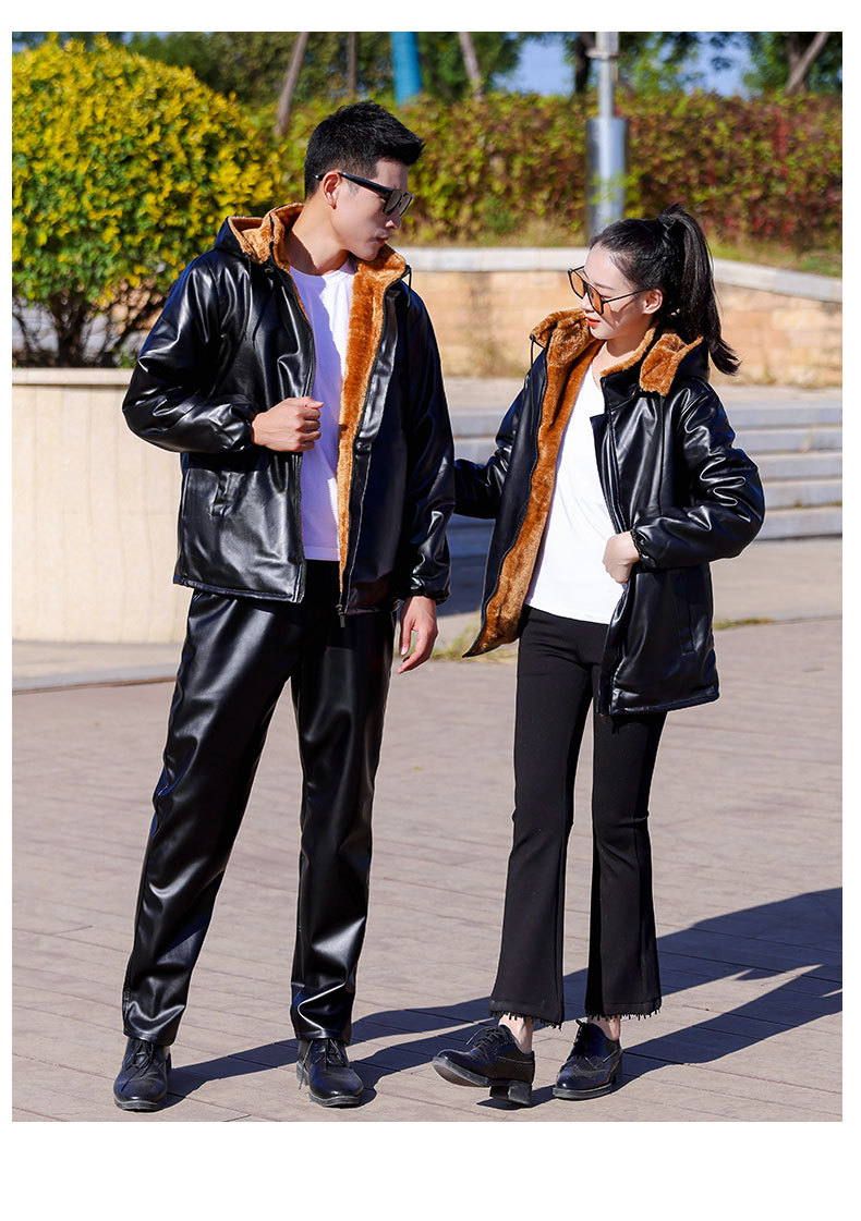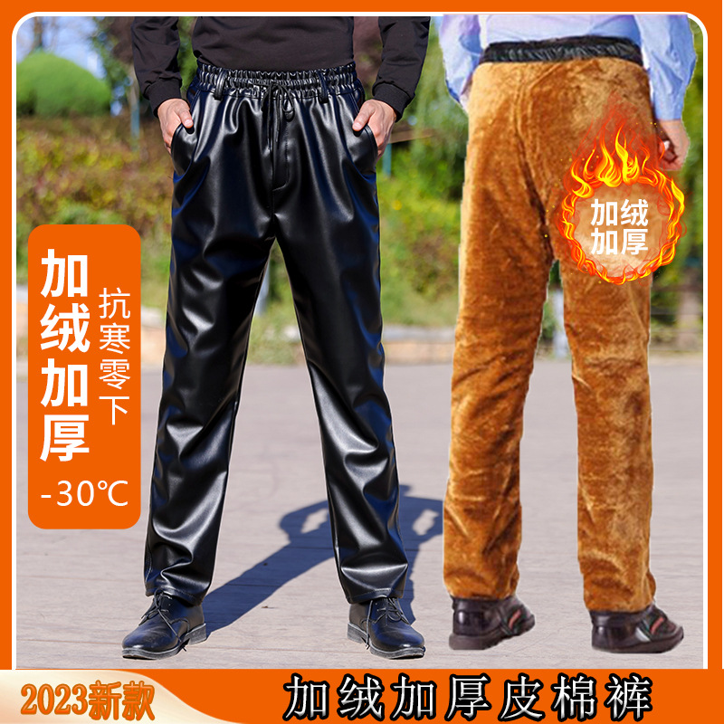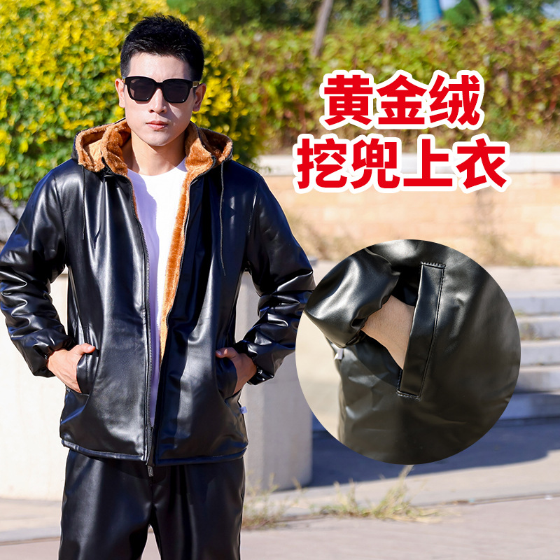 남자의 가죽 바지 세트 기모 두꺼운 느슨한 방풍 따뜻한 면 패딩 바지 면 패딩 가죽 자켓 노동 보호 작업복스토어 가기