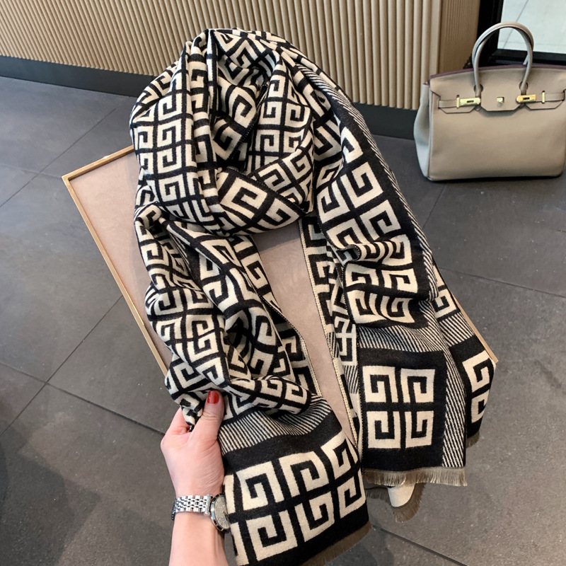 숄 여성용 한국식 모든 경기 봄과 가을 긴 따뜻한 목 프릴 편지 양면 캐시미어 스카프 여성용 겨울