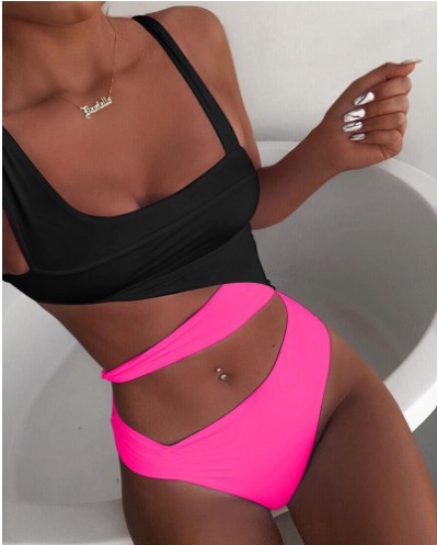 2021 새로운 단색 원피스 수영복 단색 원피스 비키니 여성용 중공 수영복 유럽과 미국 비키니