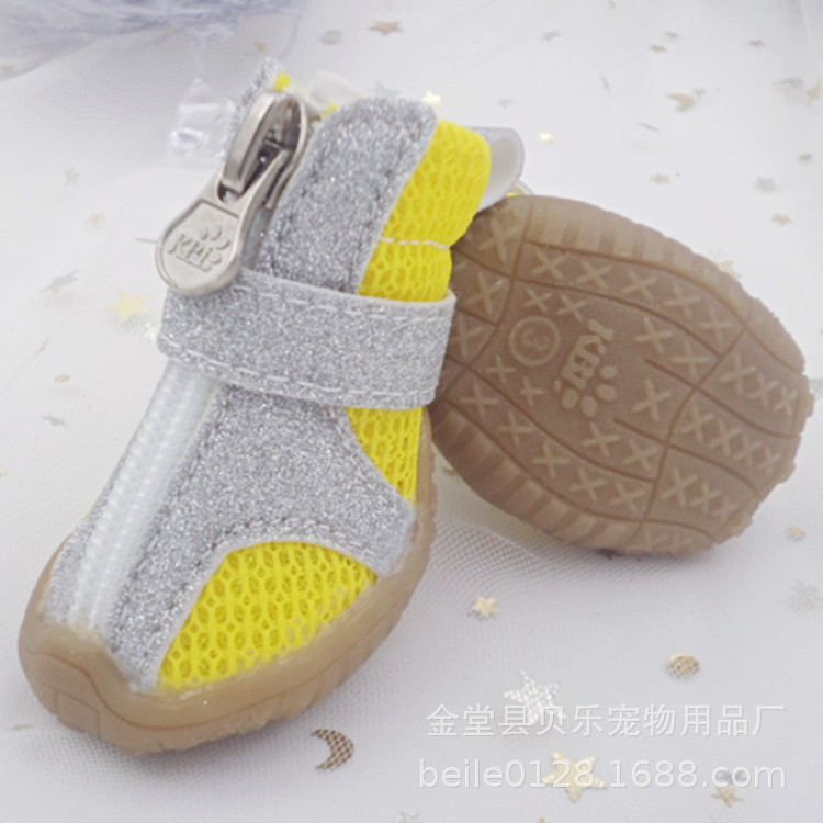 • 产品介绍:金丝网布+格力特细粉PU+橡胶牛筋底胶底结合绑带加围条设计,穿着十分方便舒适,实用性好,狗狗穿上显得十分的时尚大方,柔软舒服