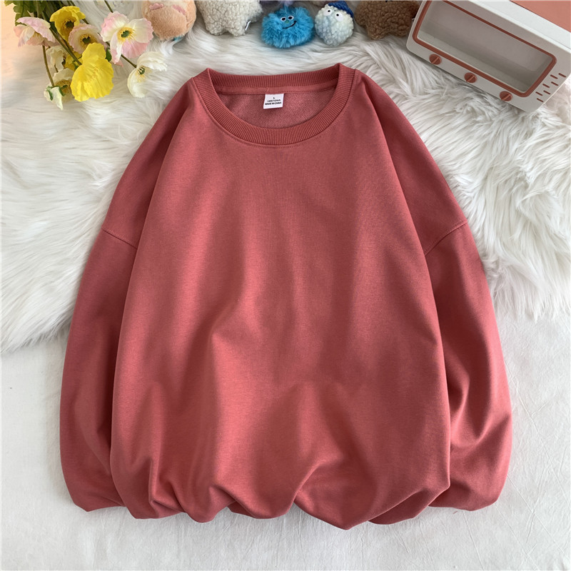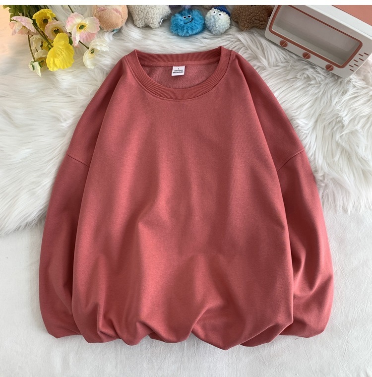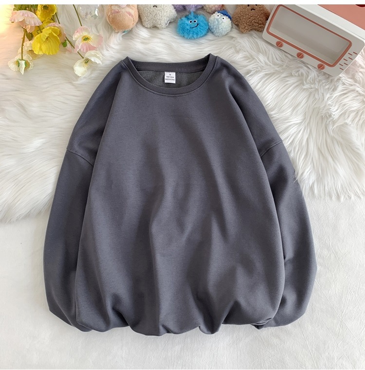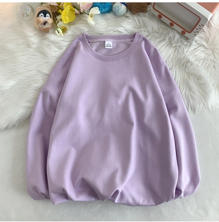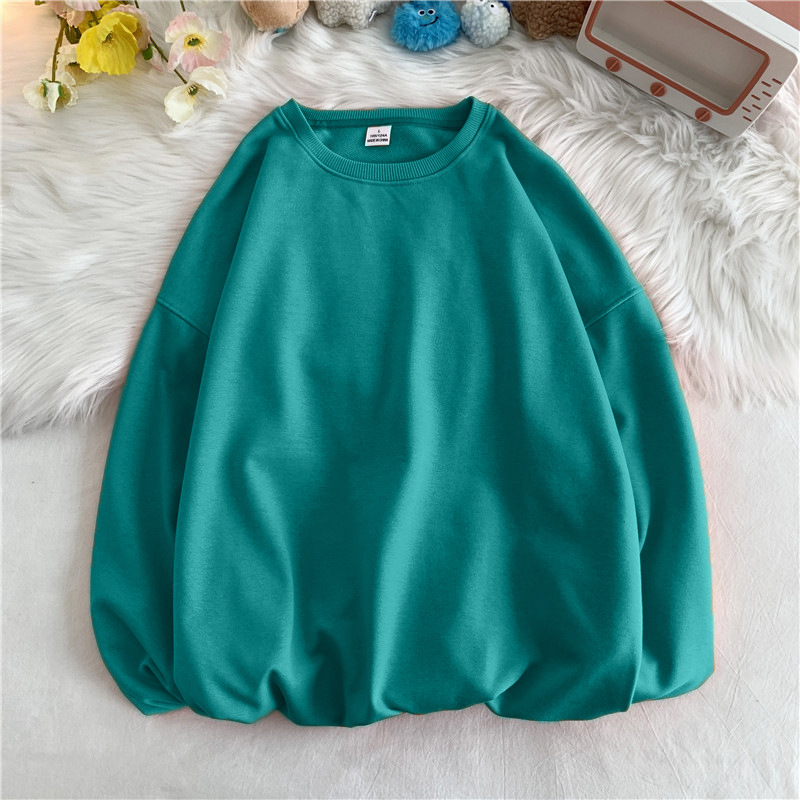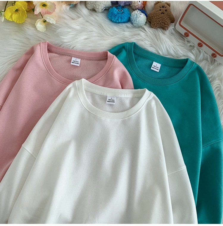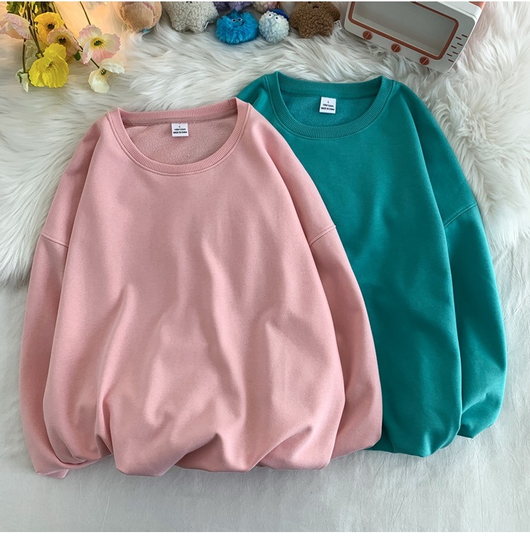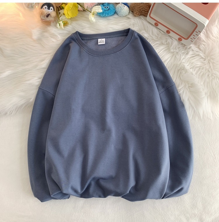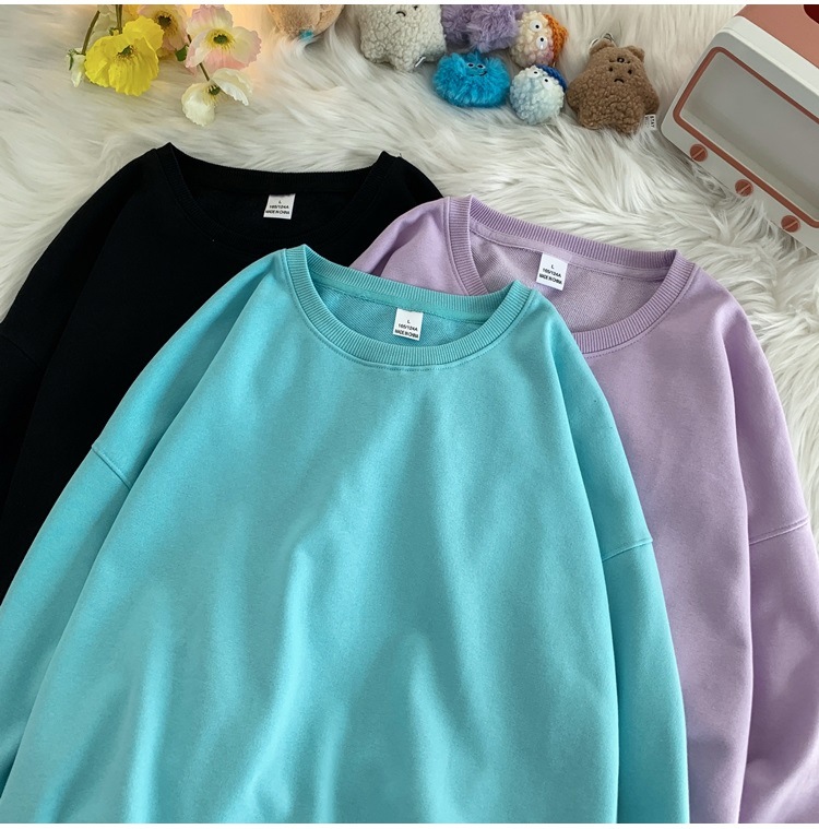 330g 대형 테리 50% 면 순색 라운드넥 스웨트셔츠 남성용 루즈핏 오버사이즈 드롭숄더 스타일 풀오버 커플 스웨트셔츠스토어 가기
