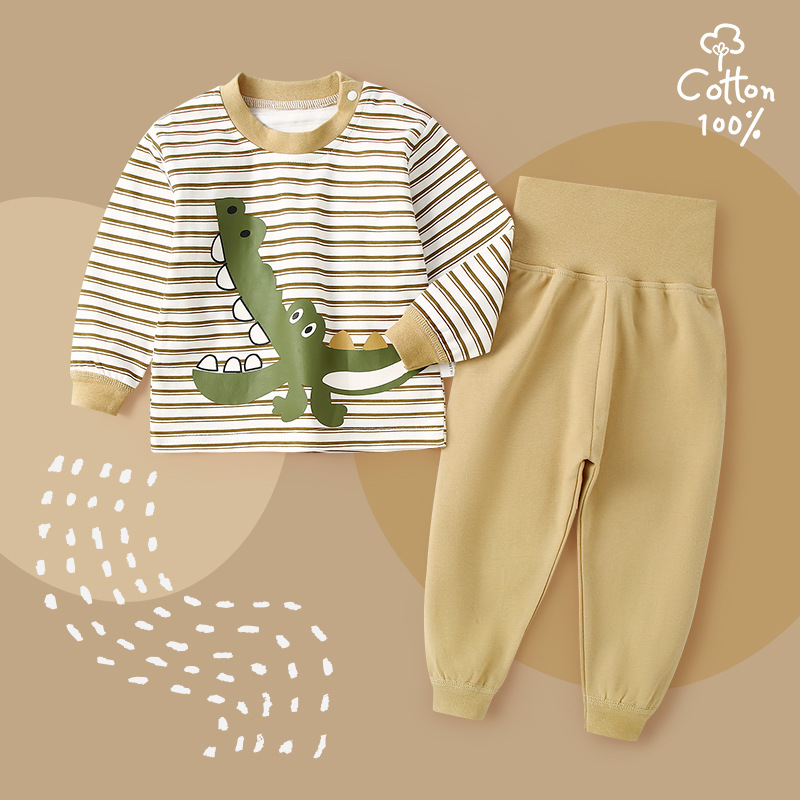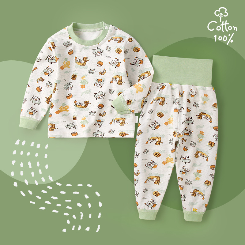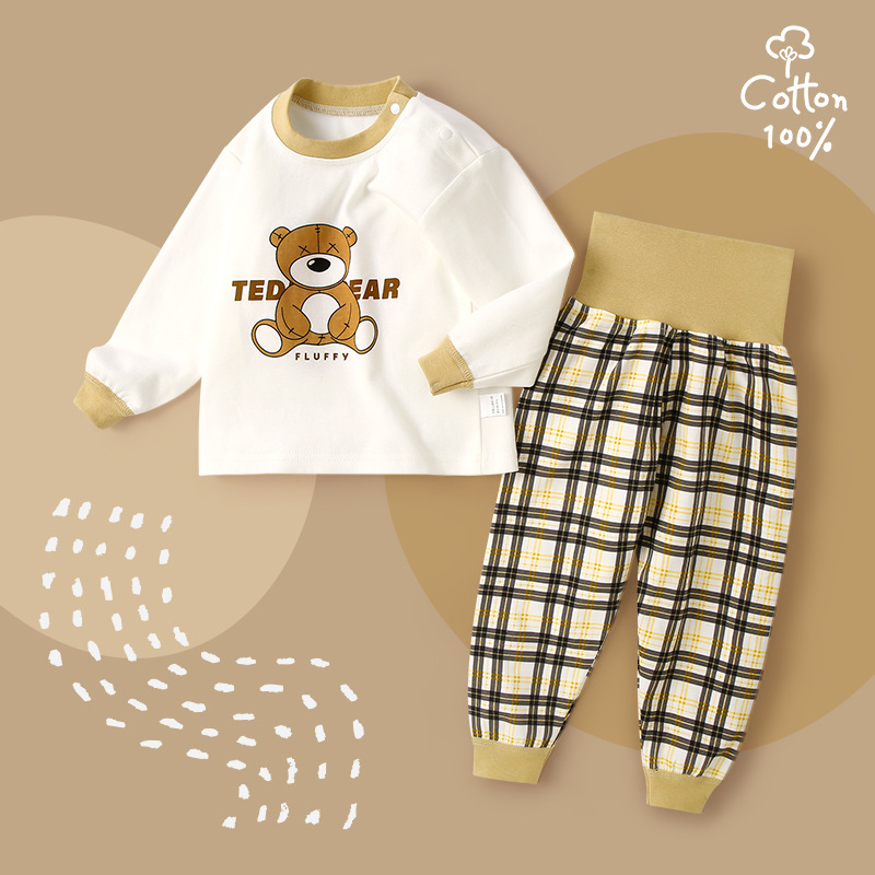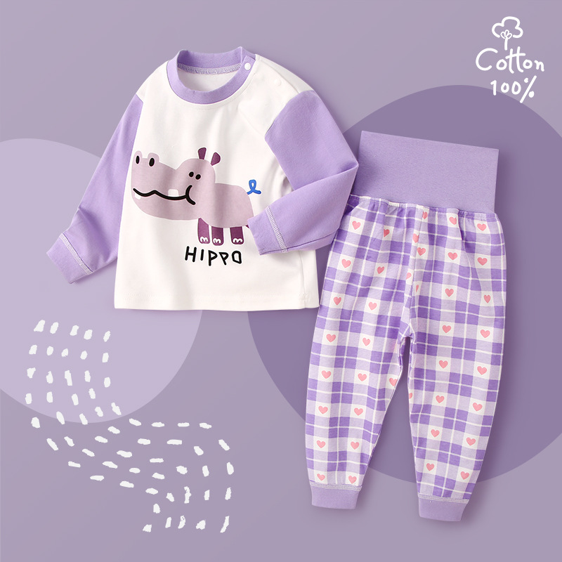 새로운 아기 가을 옷과 바지 세트 아기의 배를 보호 하이 웨이스트 바지 투피스 어린이 잠옷 가정 의류 어린이 의류