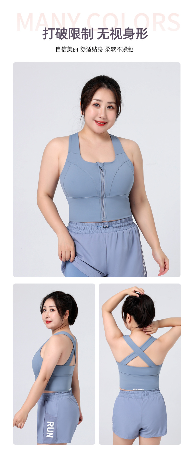 플러스 사이즈 스포츠 조끼 복장 여름 아름다움 다시 휘트니스 요가 브래지어 전면 지퍼 충격 방지 스포츠 속옷 여성용스토어 가기