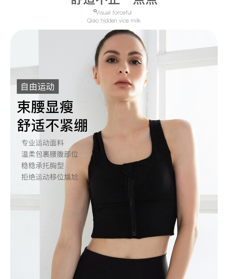 플러스 사이즈 스포츠 조끼 복장 여름 아름다움 다시 휘트니스 요가 브래지어 전면 지퍼 충격 방지 스포츠 속옷 여성용