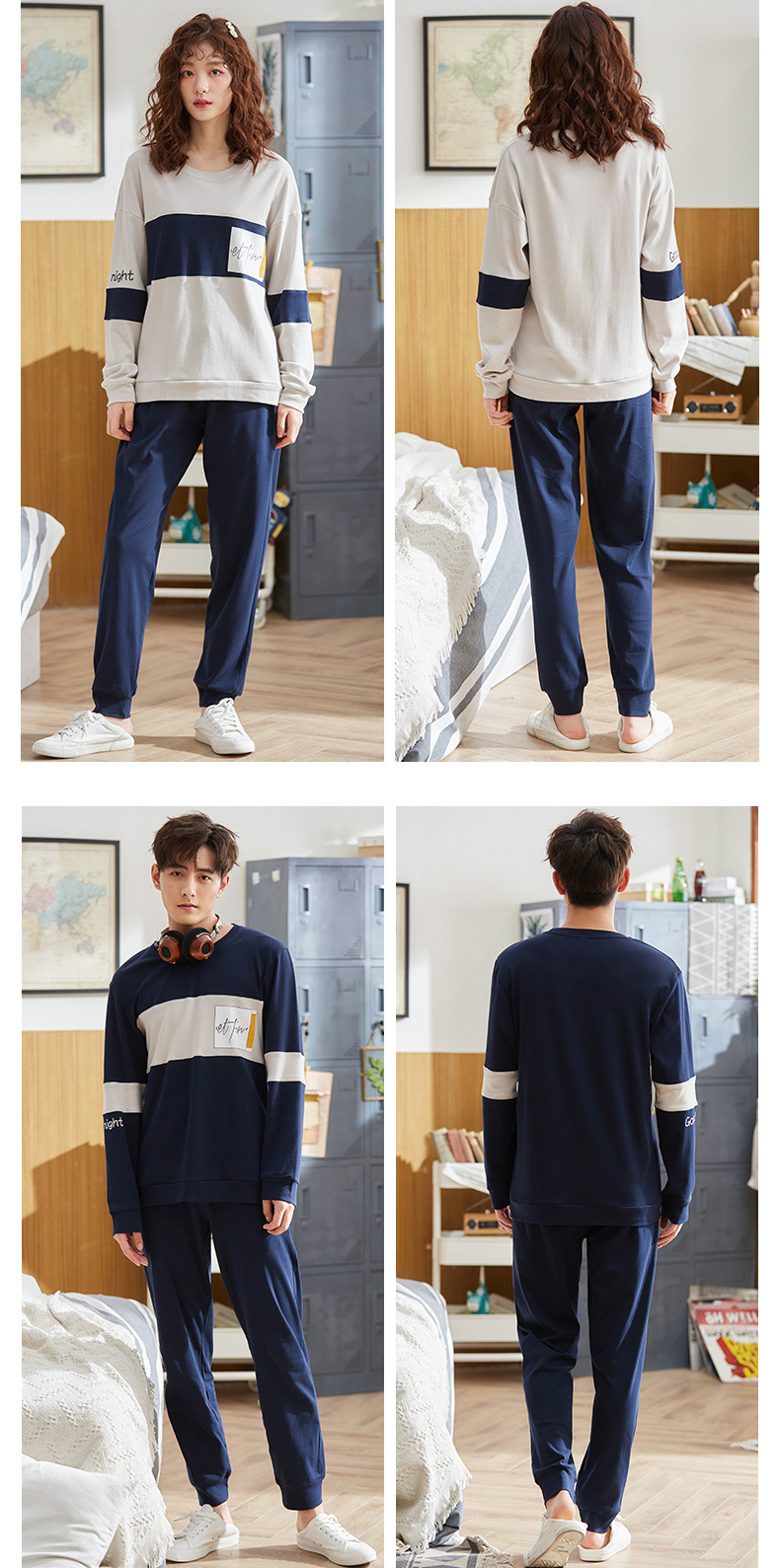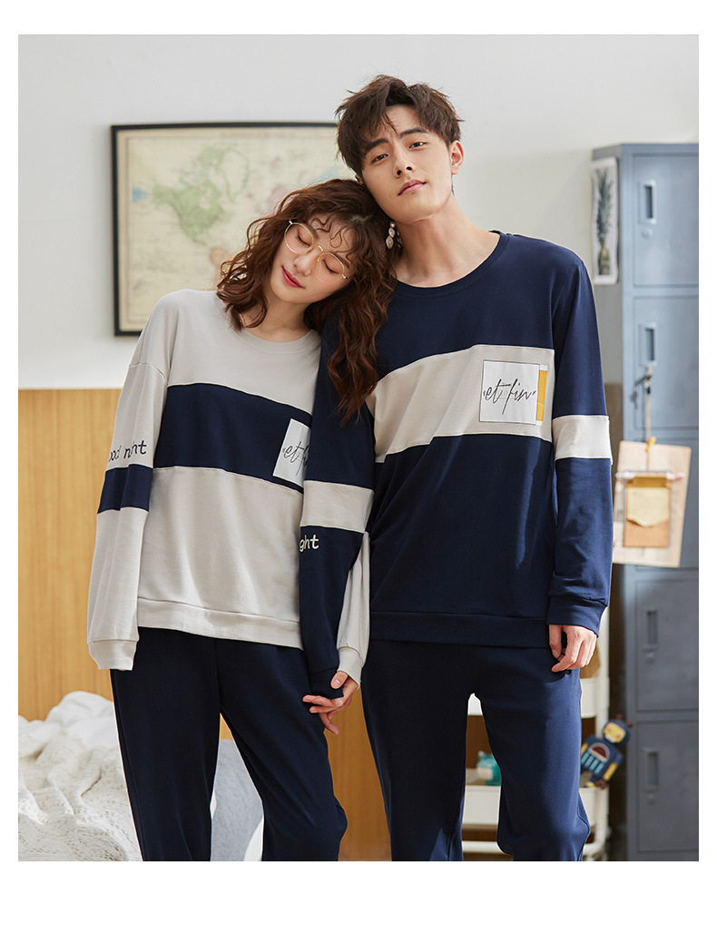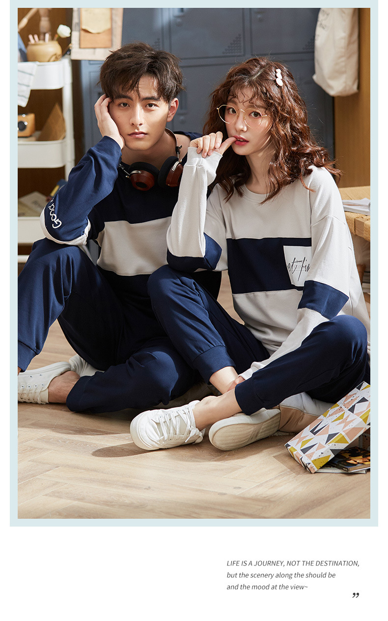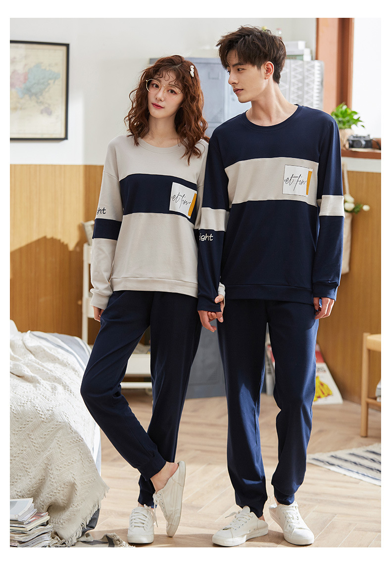 跨境情侣睡衣女春秋纯棉长袖套头休闲圆领长裤男可外穿家居服套装,纯棉质量,不起球不变型,精细的车工,专柜的品质,支持各种大小型活动,欢迎下单.