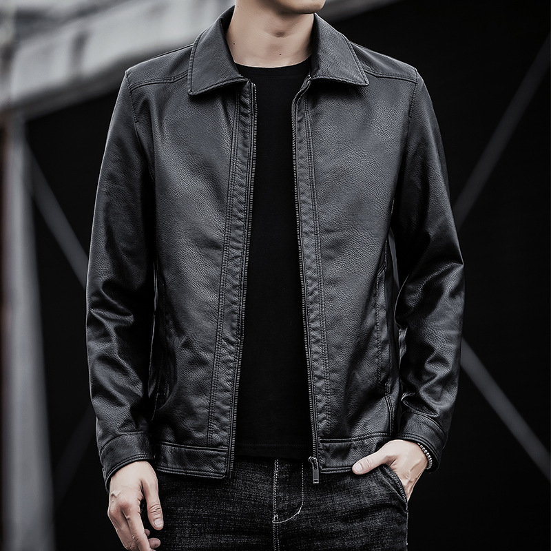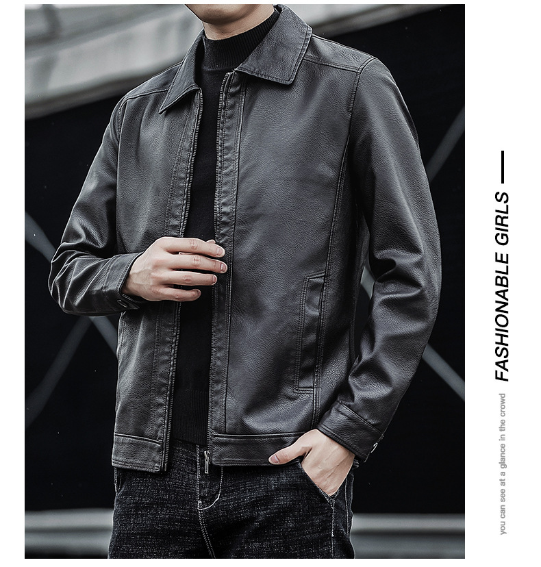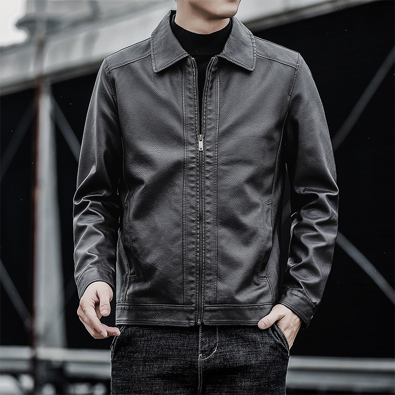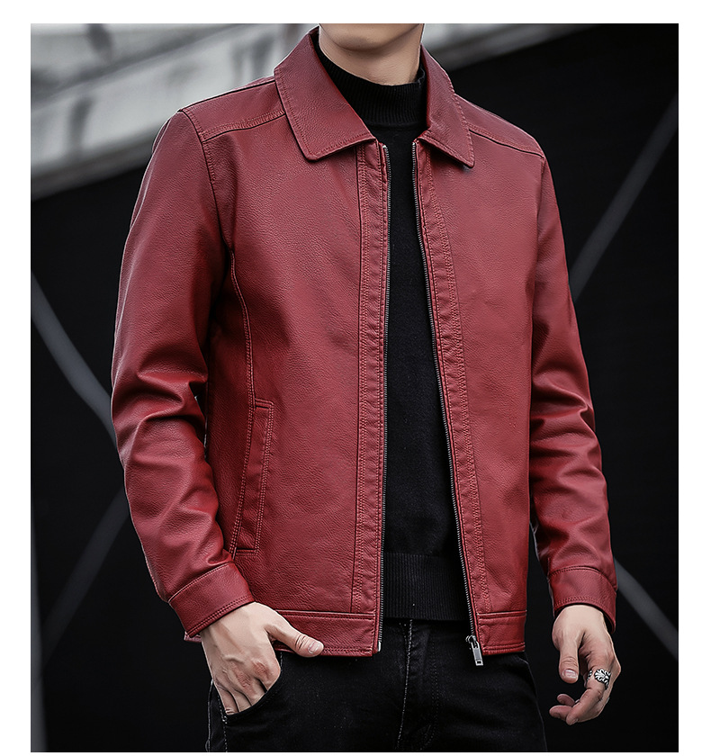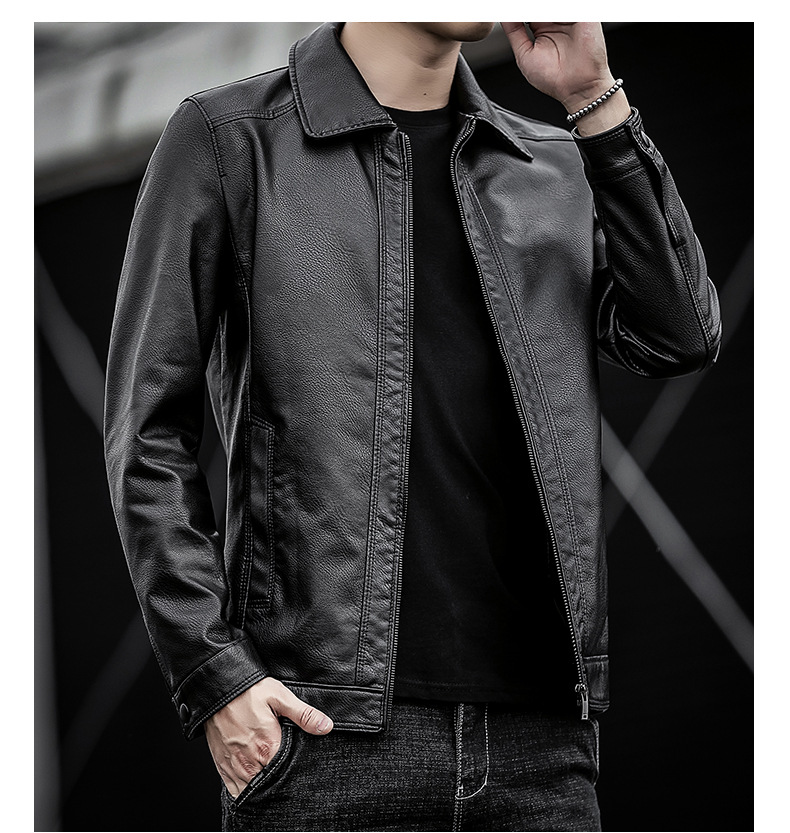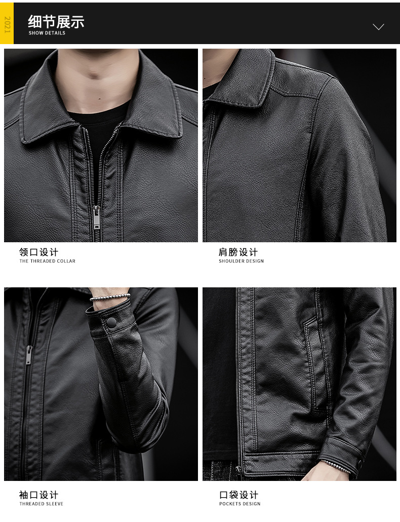 남성 가죽 2021 의 세대 봄과 가을 새로운 중년 가죽 남성 PU 가죽 옷깃 코트 비즈니스 남성 의류스토어 가기