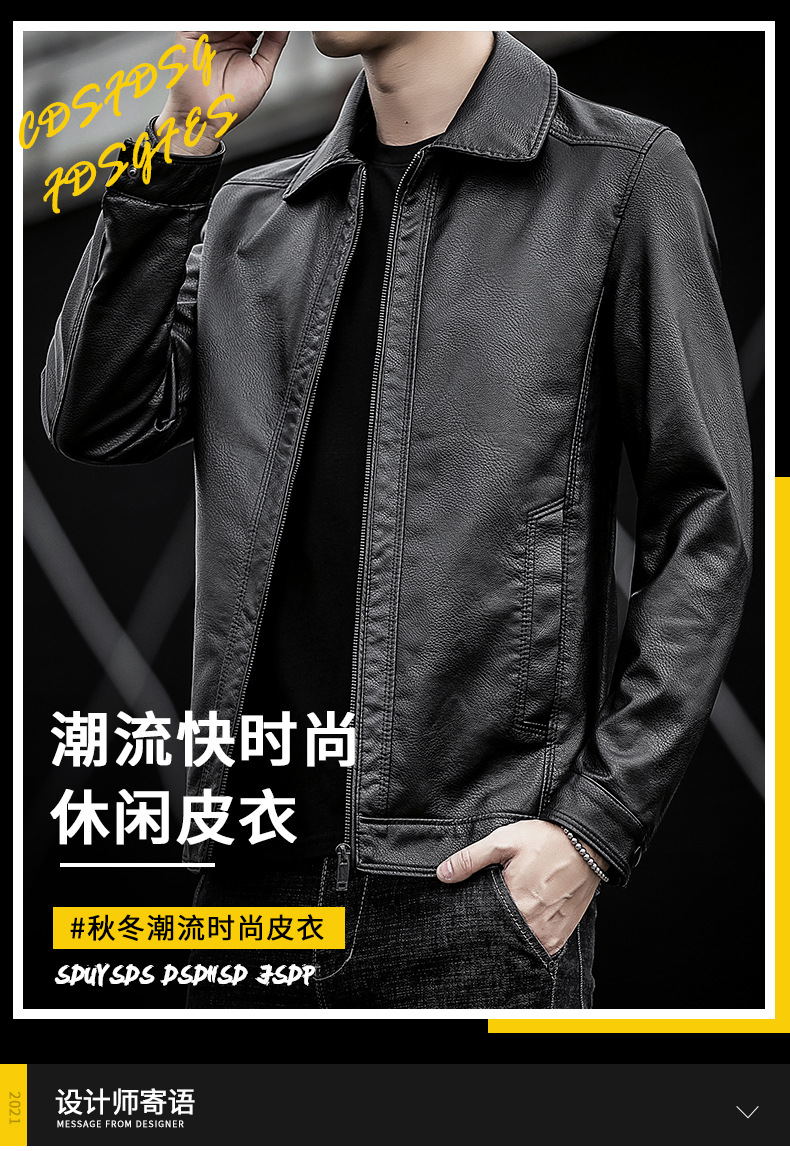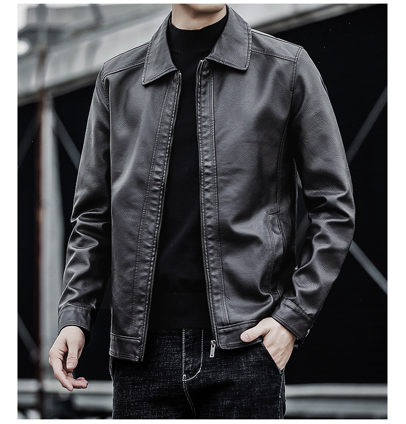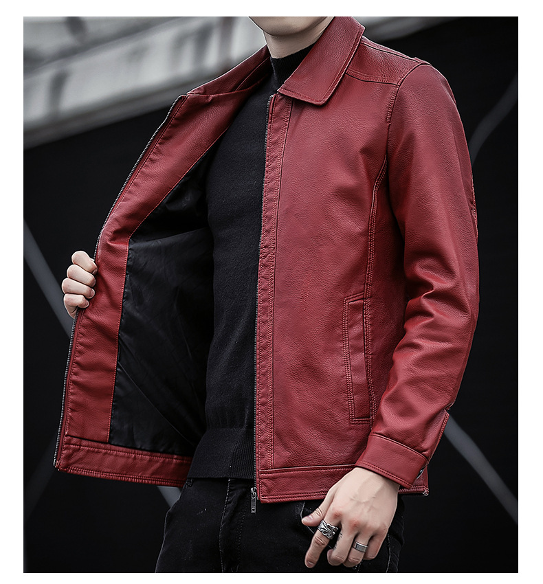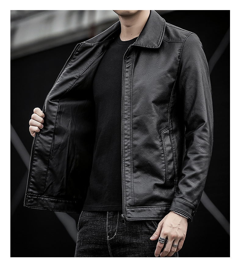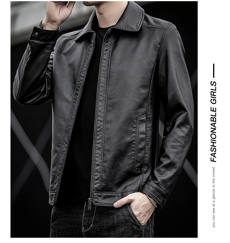 남성 가죽 2021 의 세대 봄과 가을 새로운 중년 가죽 남성 PU 가죽 옷깃 코트 비즈니스 남성 의류스토어 가기