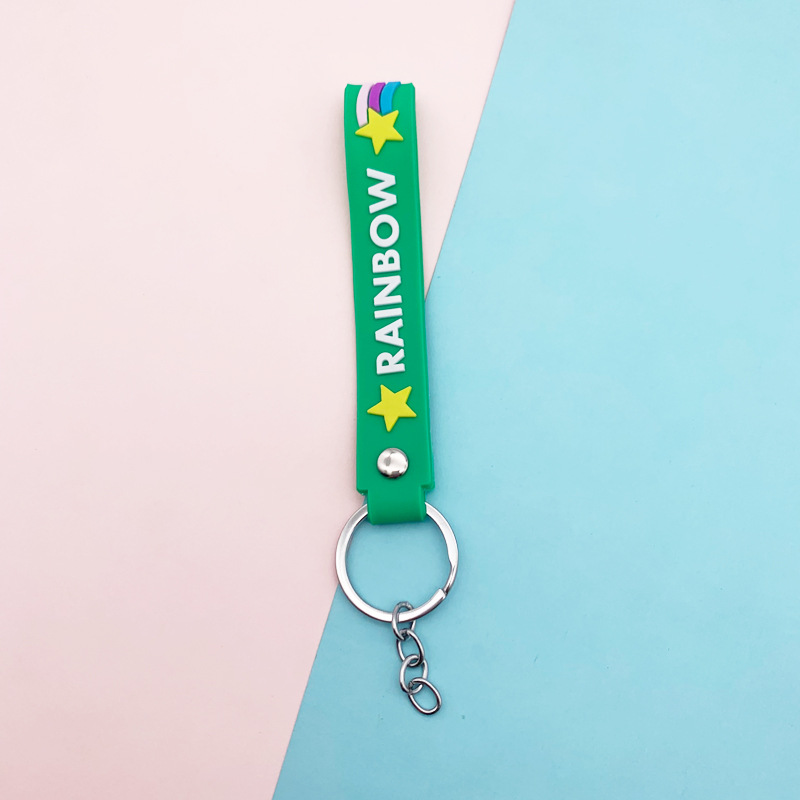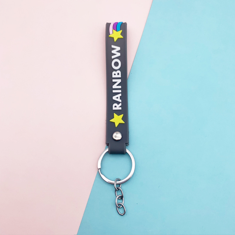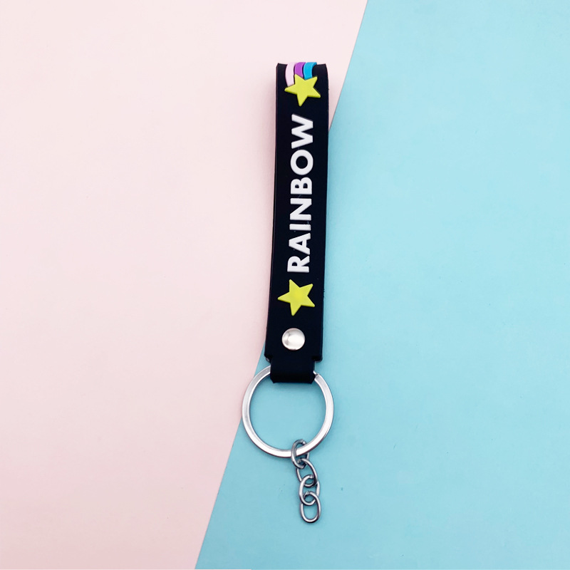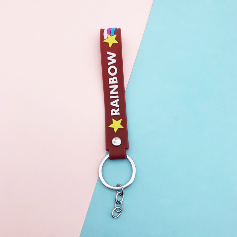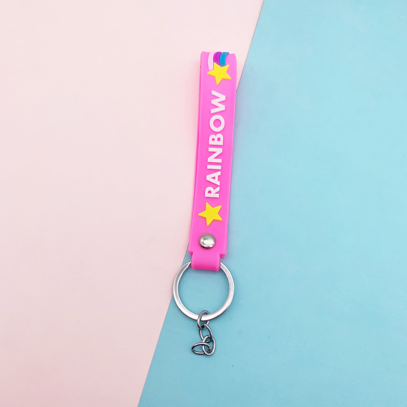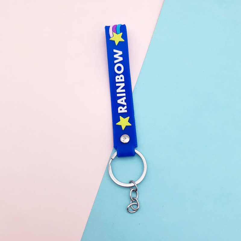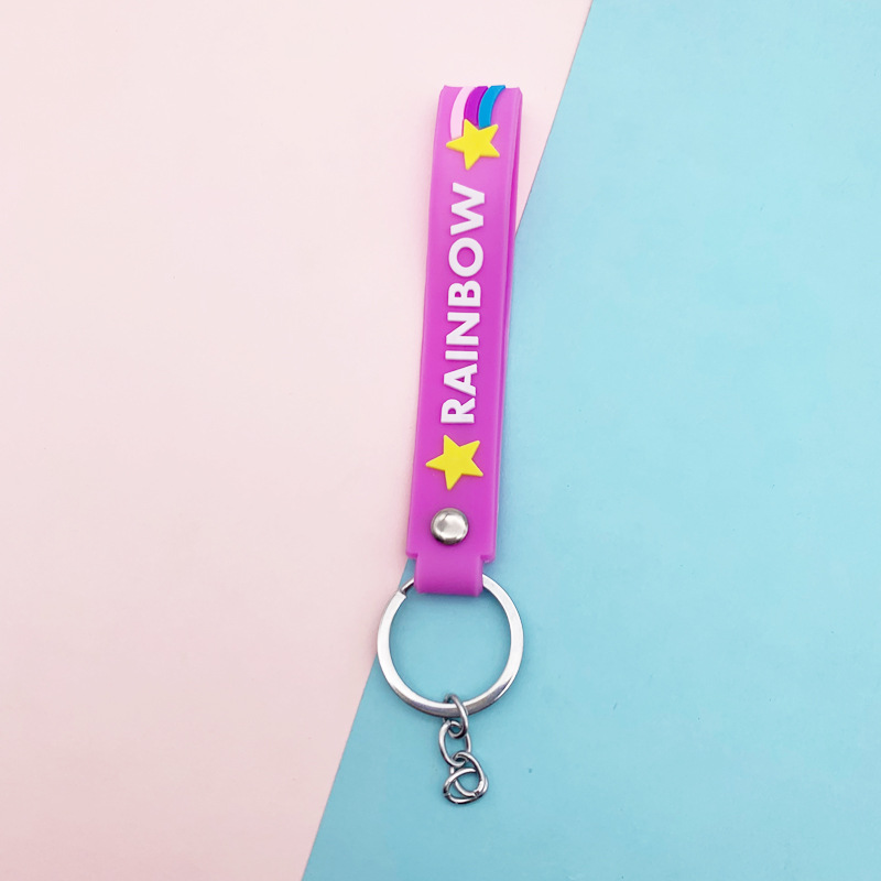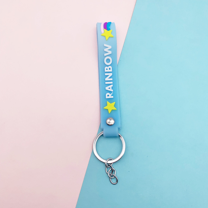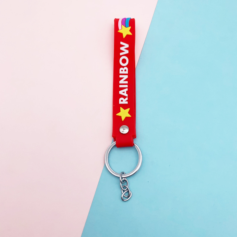 새로운 별 무지개 가죽 로프 열쇠 고리 펜던트 pvc 부드러운 고무 인형 액세서리 작은 상품 마구간 재고 도매스토어 가기