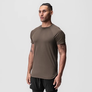 카키 새로운 남자의 단색 슬림핏 라운드 넥 긴팔 티셔츠 유행 접힌 라글란 소매 남성 스포츠 티셔츠스토어 가기