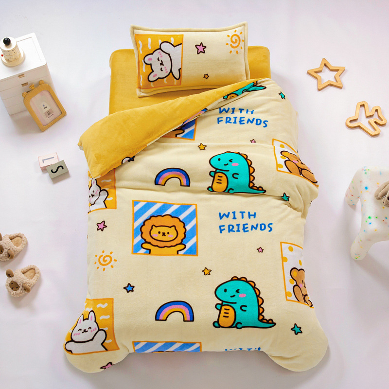 우유 벨벳 두꺼운 유치원 점심 이불 3 조각 세트 겨울 산호 벨벳 어린이 아기 낮잠 퀼트 커버