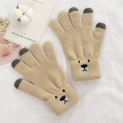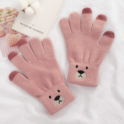 한국 스타일 귀여운 니트 곰 다섯 손가락 장갑 여자의 겨울 터치 스크린 양모 따뜻한 학생 승마 만화 장갑