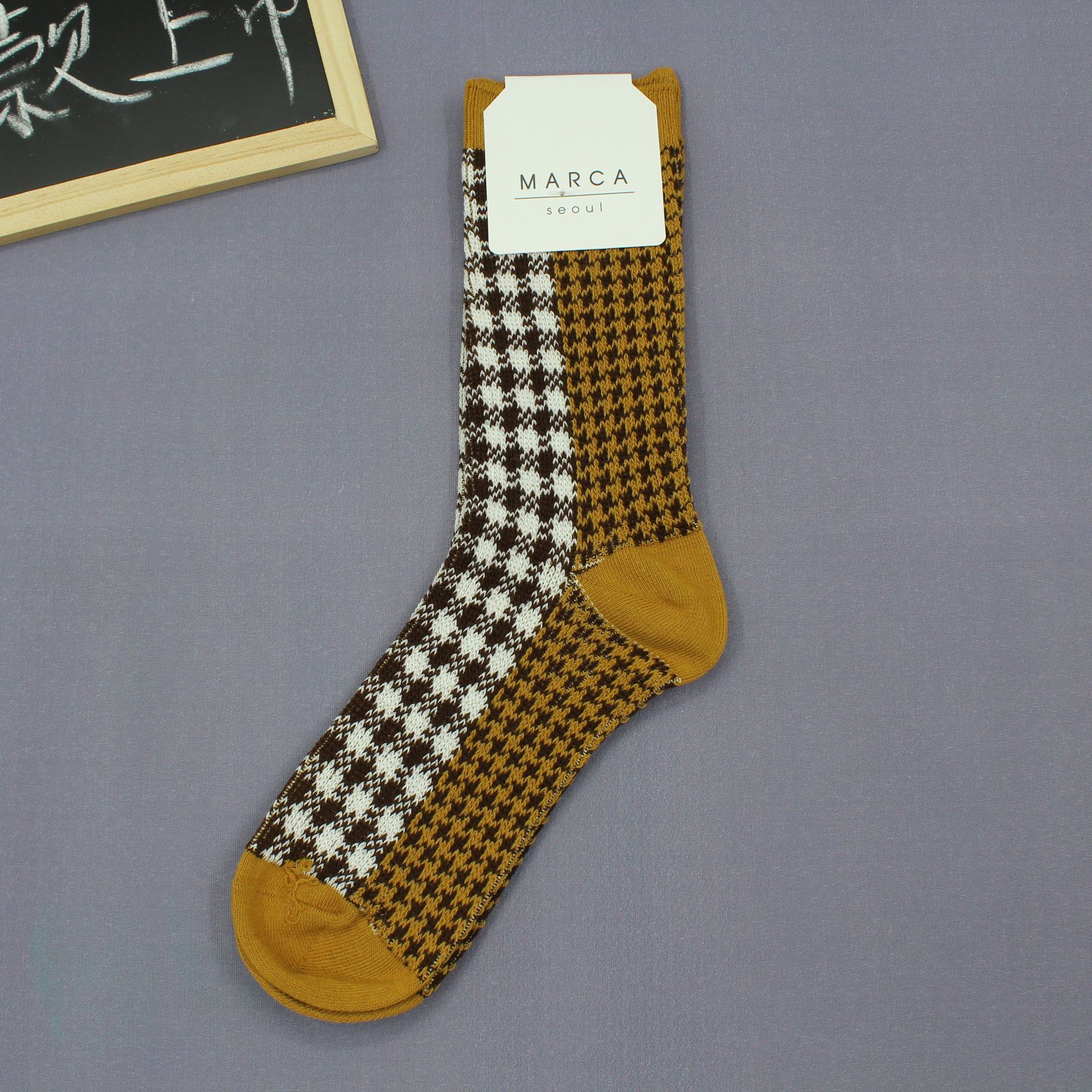 한국 동대문 가을과 겨울 새로운 스택 양말 신선한 목가적 격자 무늬 한국 여성의 중간 길이 양말스토어 가기