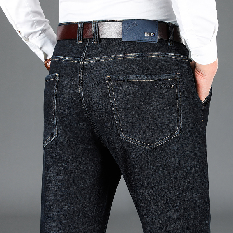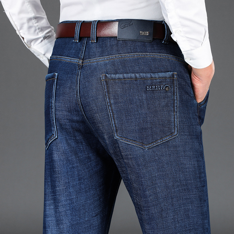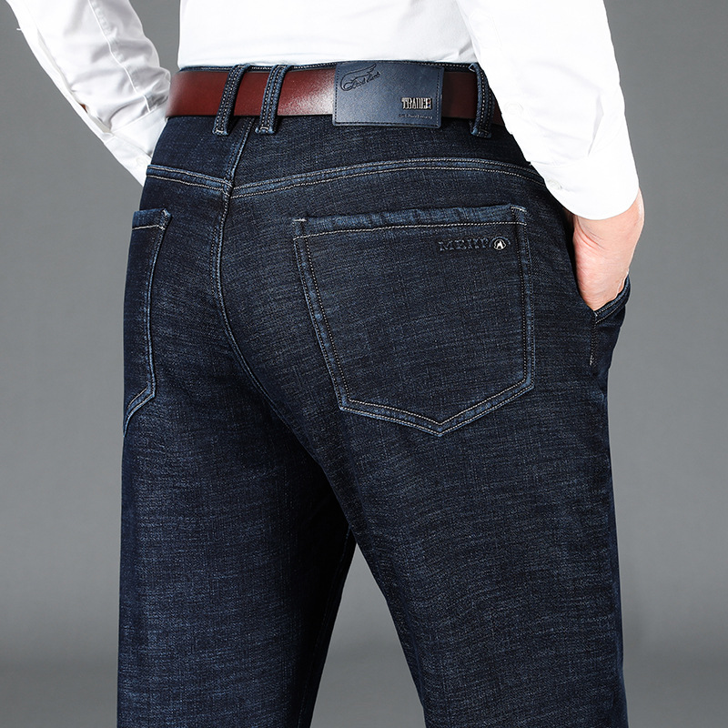 양털 안감 데님 팬츠 남성용 두꺼운 중년용 루즈핏 스트레이트 팬츠 2025 가을 겨울 신상 남성복 보온 방한