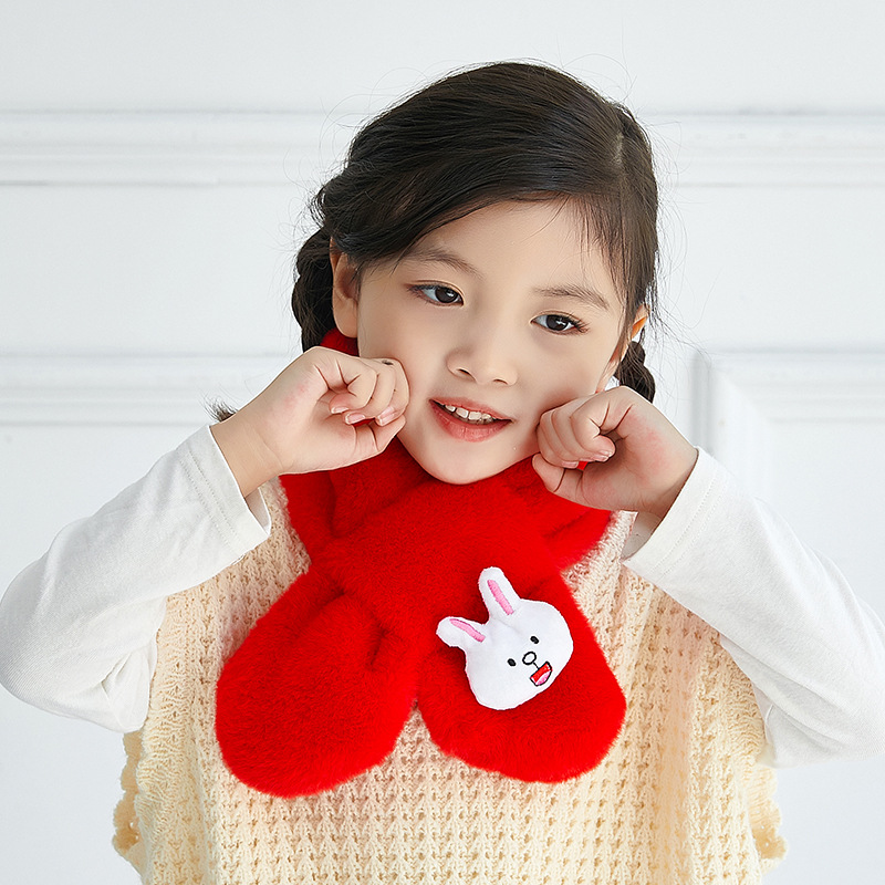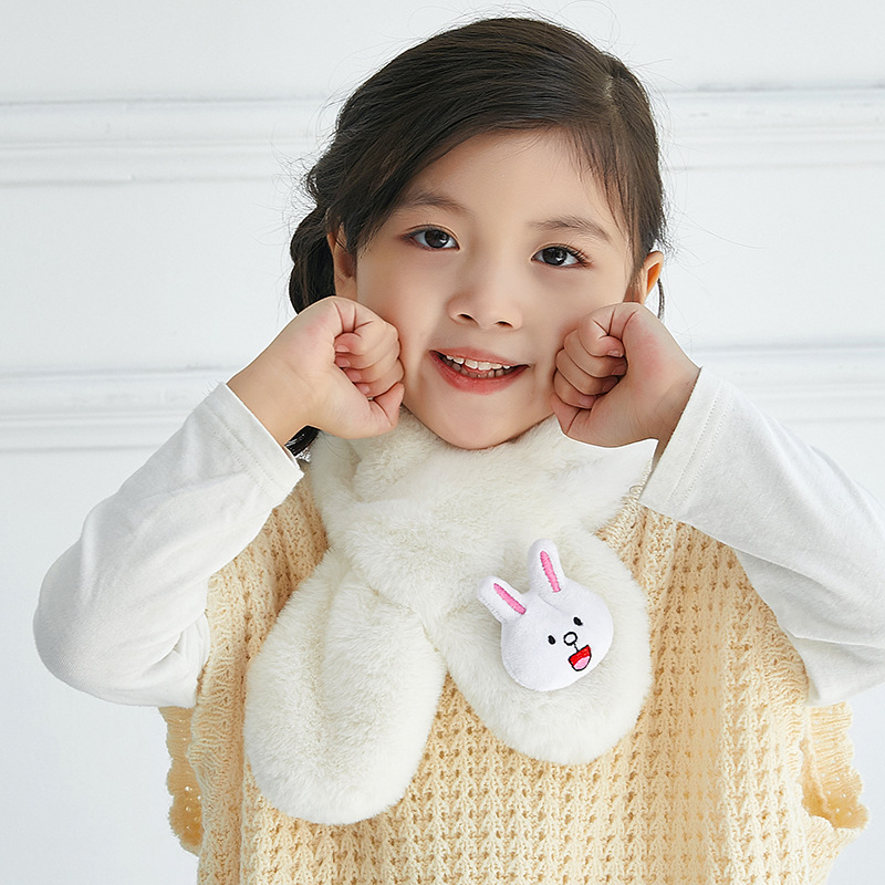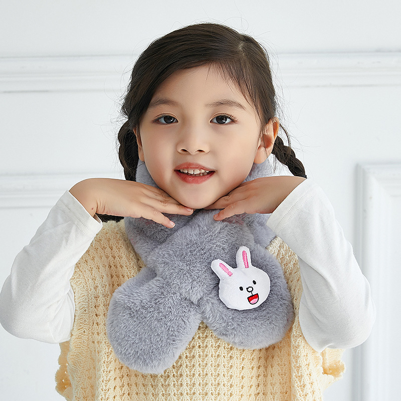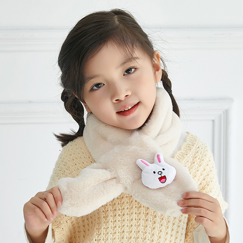 소년과 소녀를위한 따뜻한 어린이 스카프 겨울 아기 슈퍼 귀여운 아기 토끼 모피 플러시 한국 만화 칼라스토어 가기
