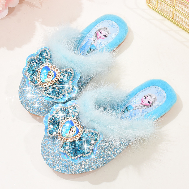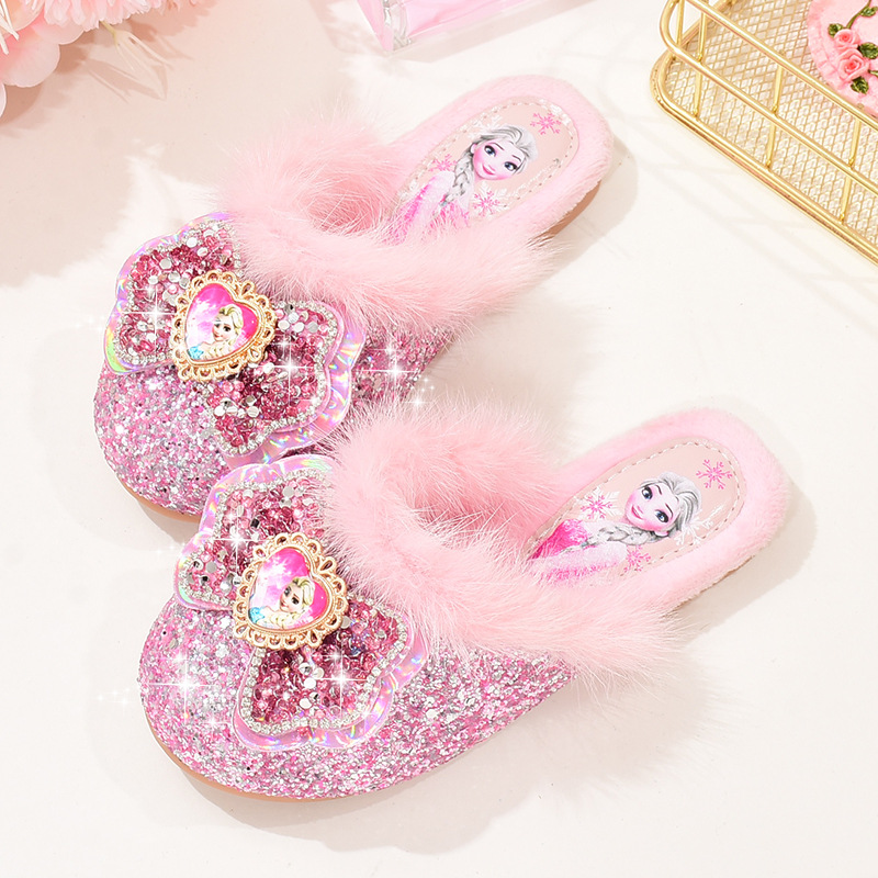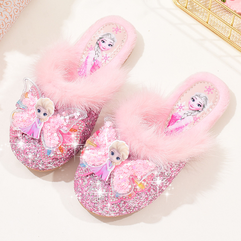 여자 푹신한 슬리퍼 겨울 귀여운 어린이 공주 기모 면 슬리퍼 아기 소녀 냉동 아이샤 홈 신발