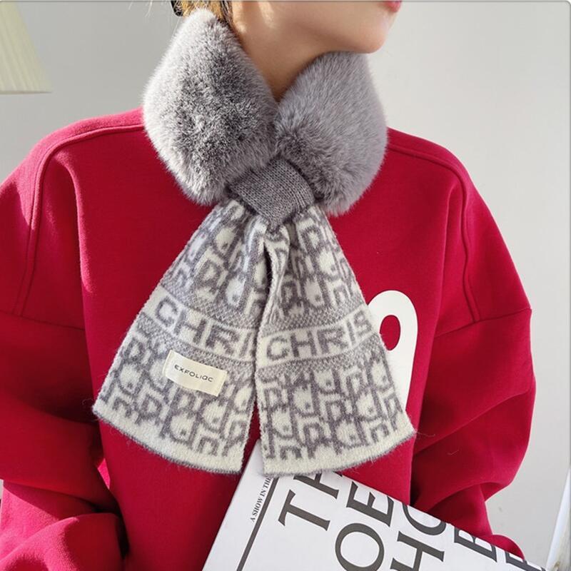 2021 새로운 스타일 마오마오 스카프 따뜻한 모든 일치 가짜 렉스 토끼 모피 크로스 스카프 겨울 패션 울 칼라스토어 가기