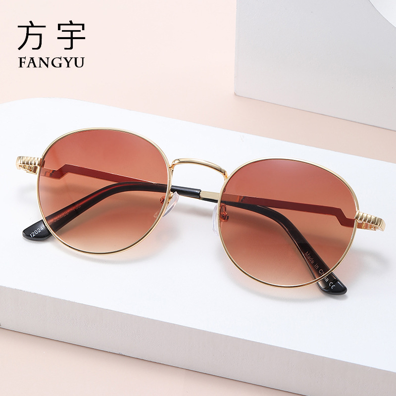 2023 새로운 패션 유럽과 미국 스타일 남성과 여성을위한 금속 작은 원형 프레임 거리 촬영 Instagram 스타일 선글라스