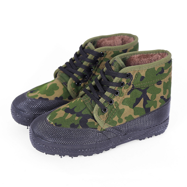 겨울 기모 두꺼운 해방 신발 남성과 여성을위한 하이탑 신발 면화 신발 노동 보호 따뜻한 신발 남성과 여성을위한 위장 고무 신발