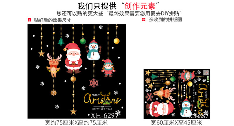 [포켓] 크리스마스 장식 문 스티커 산타 클로스 창 스티커 자체 접착 유리 스티커 창조적 인 벽 스티커 XH6297