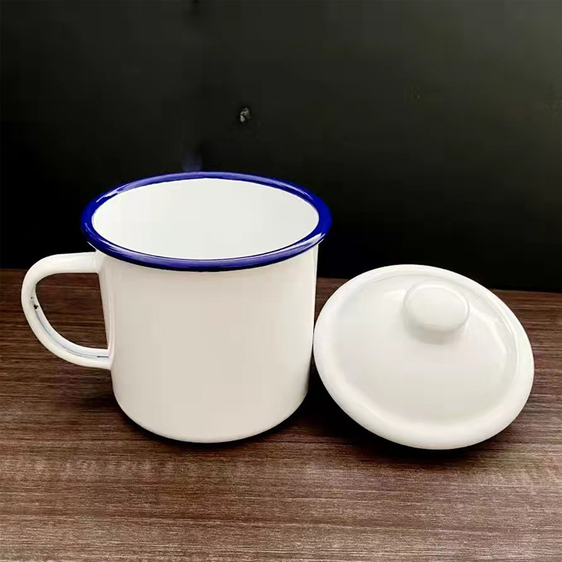 빈티지 에나멜 컵 인쇄 로고 빈티지 차 항아리 향수 에나멜 컵 뚜껑 창조적 인 머그잔 도매