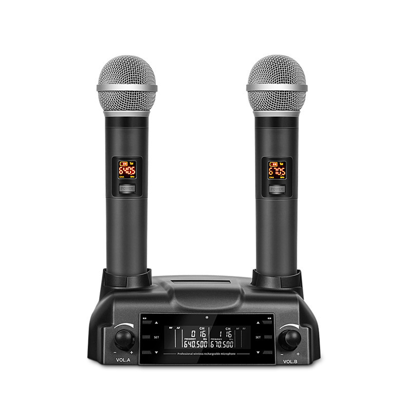 无线磁场感应充电麦克风一拖二家用KTV卡拉OK专业无线话筒U段舞台